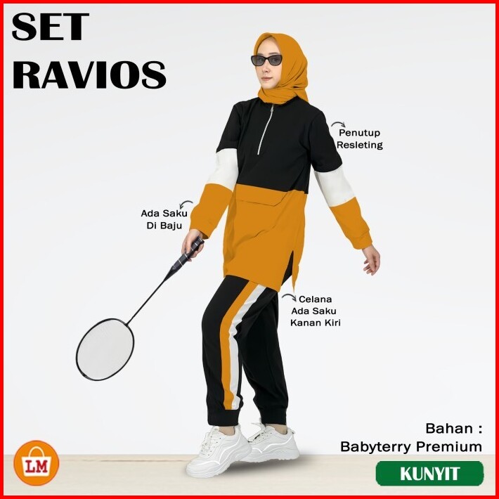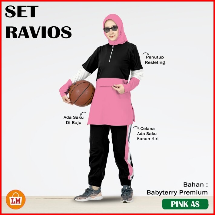 Ravios Set Setelan Training Olahraga Wanita Muslimah Lengan Panjang Bahan Babyterry Size L Xl Xxl Xxxl Adem 36486