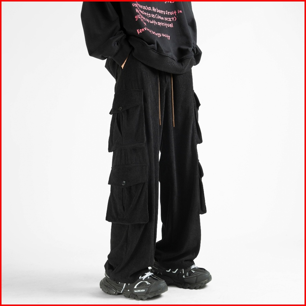 Celana Cargo Panjang Pria Corduroy Longgar Lebar Pria Hijau Army Premium Standar Stretch Original Oversize Jumbo Korean