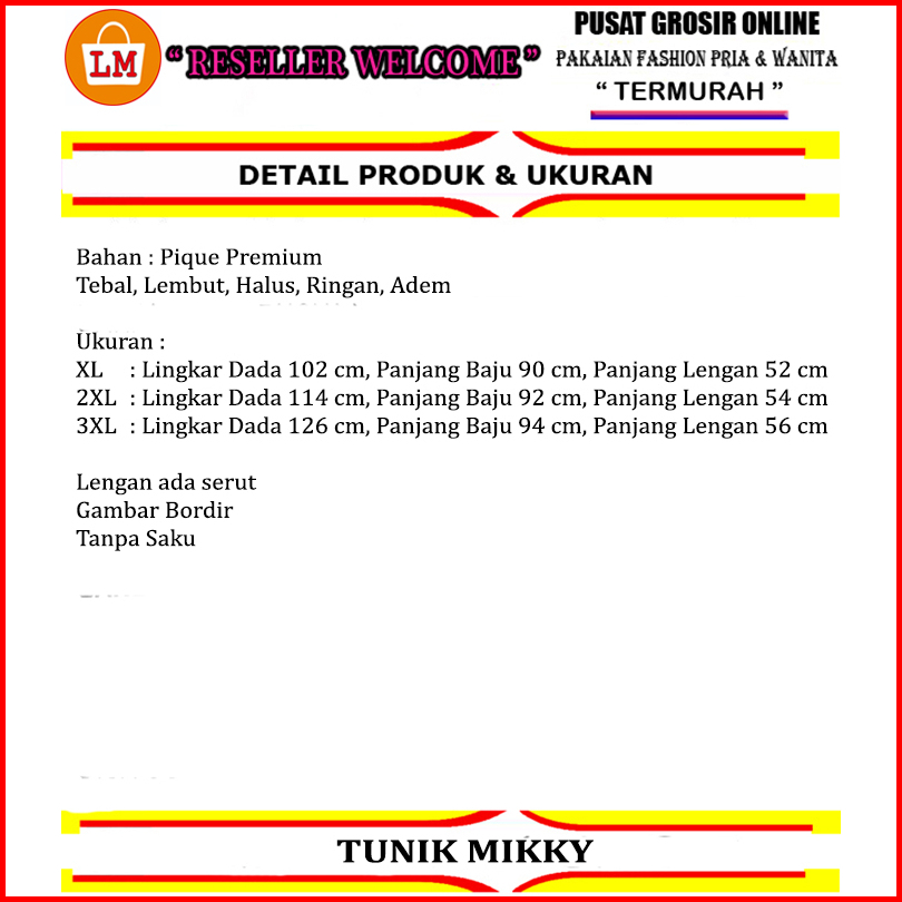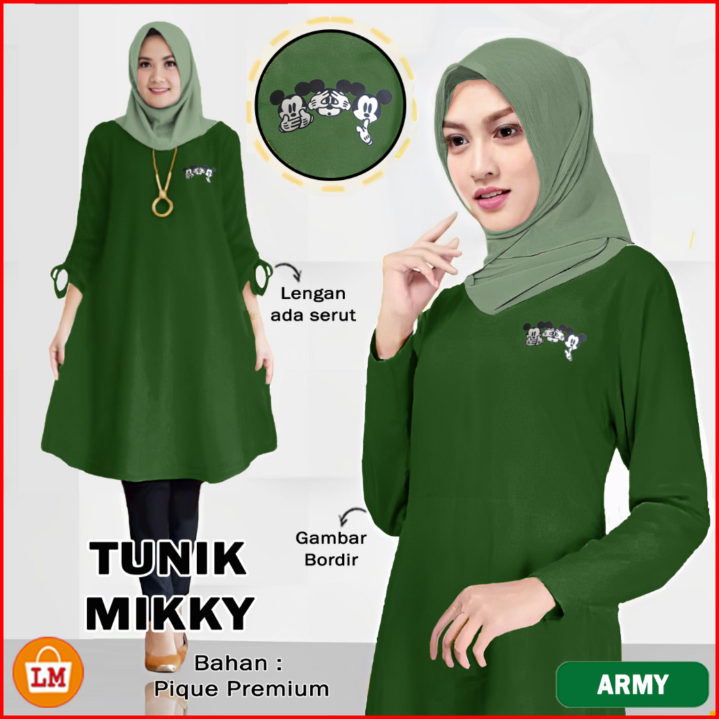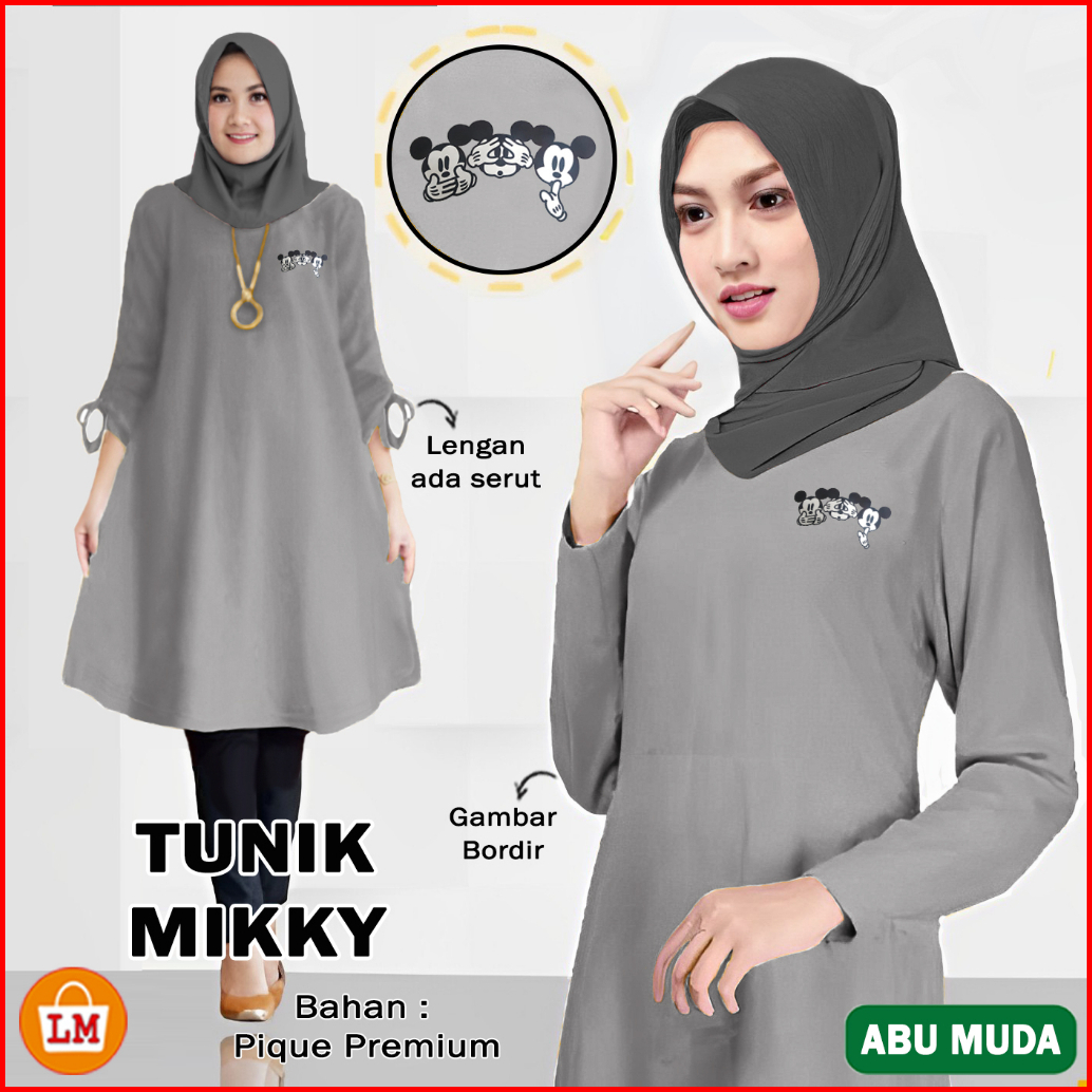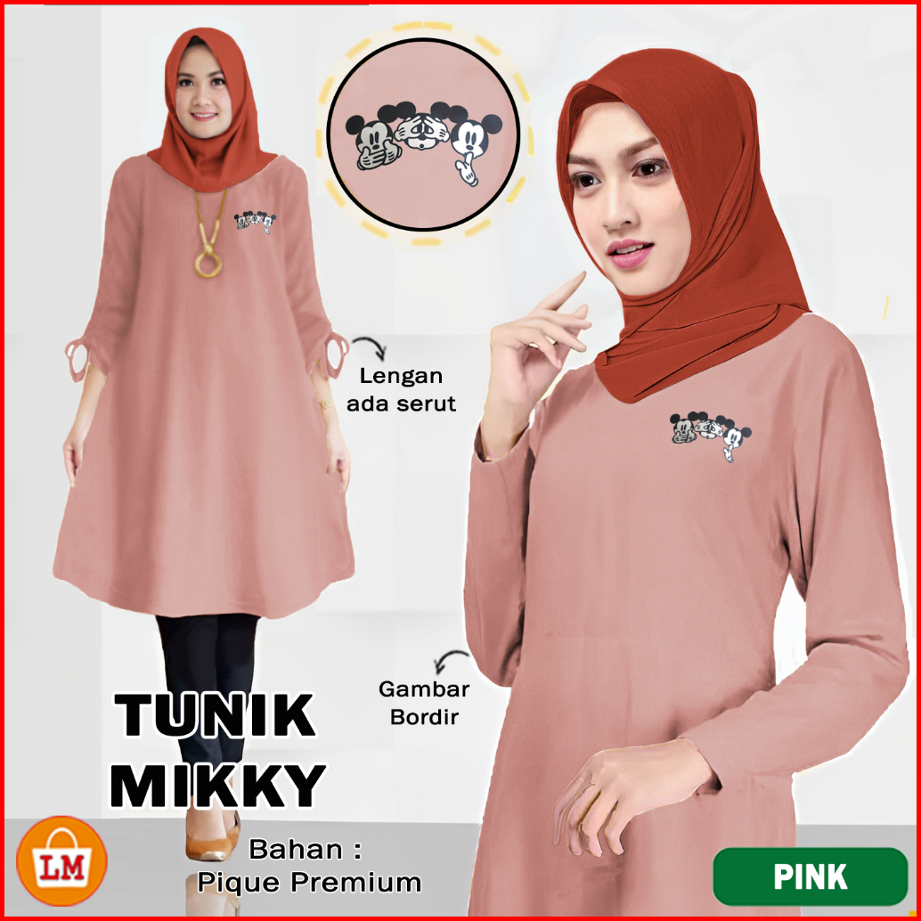 Tunik Mikky Baju Atasan Wanita Muslimah Bahan Pique Bordir Lengan Panjang Xl-xxxl 35144