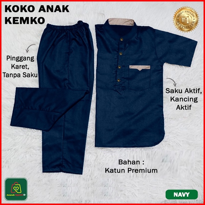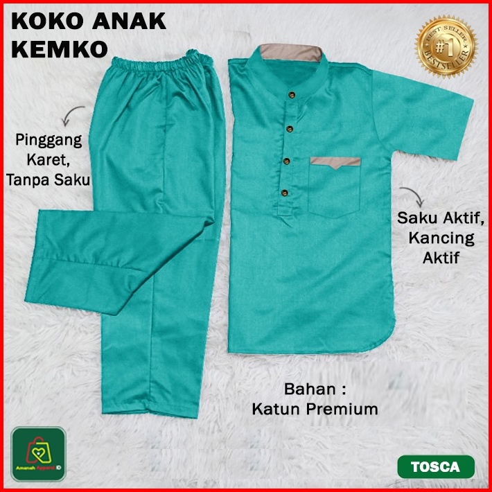 Setelan Baju Koko Anak Kemko Bahan Katun Premium Koko Trendy Lebaran Size Xs-l Usia 2-15 Tahun 22241 22243 22245 22247