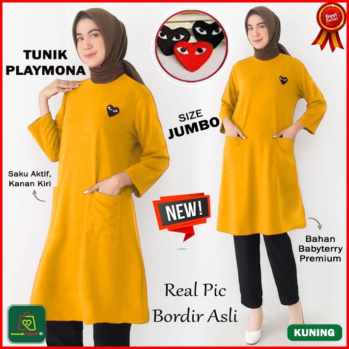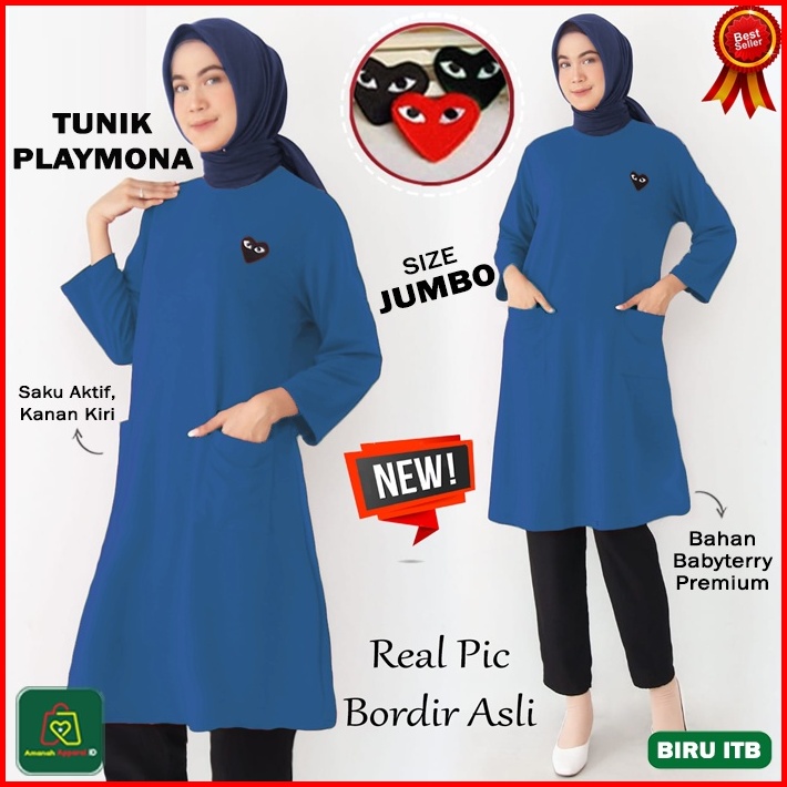 Baju Atasan Tunik Playmona Jumbo Tunic Wanita Muslimah Bahan Babyterry Premium Size Xl - Xxl 08049 08052