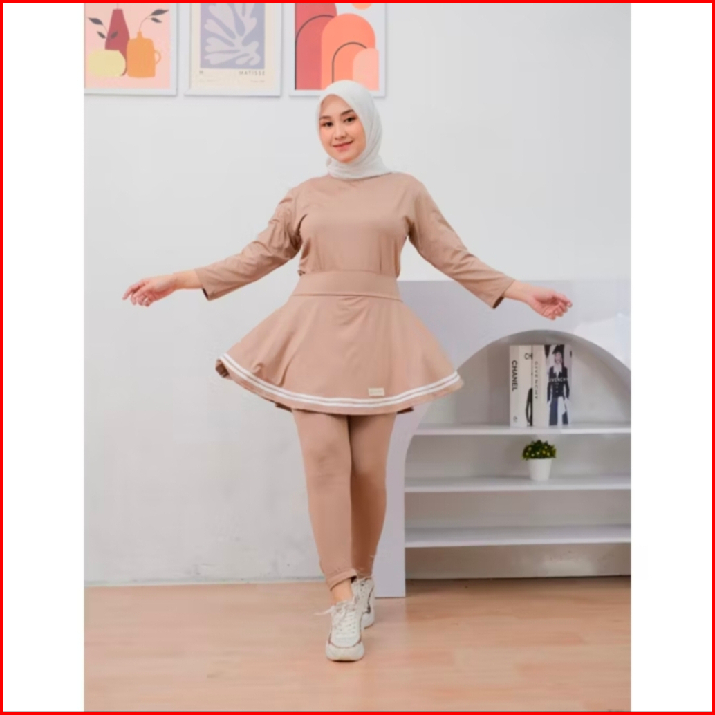 Atlana Set - Setelan Rok Legging Baju Senam Wanita Terbaru 2024 Zumba Yoga Tenis Bersepeda Olahraga