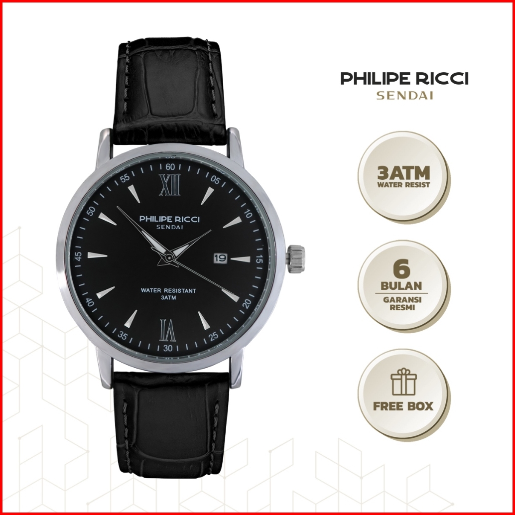 Philipe Ricci Sendai Jam Tangan Pria Kulit Analog 100 Original Water Resist 3atm 6480k Free Box
