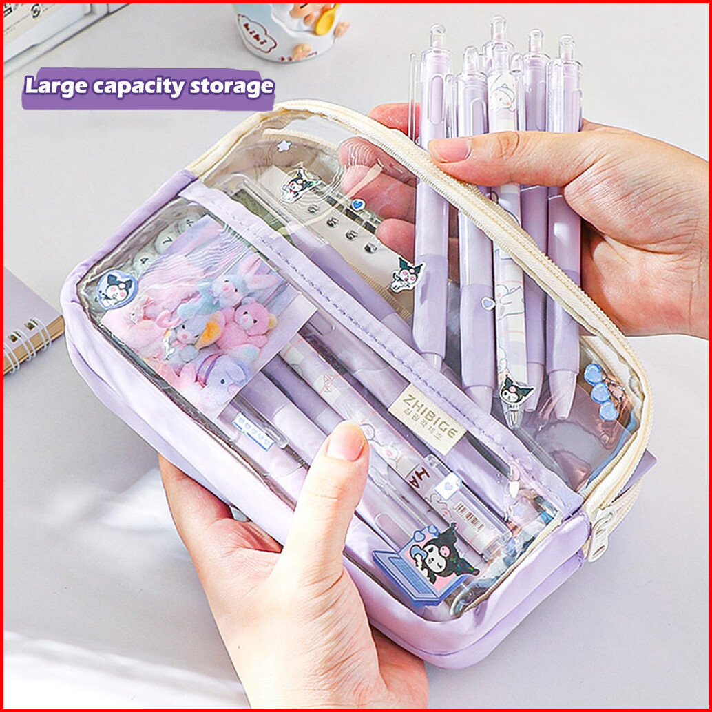 Dotding Tas Pensil Pensil Case 3 Lapis Transparan Kapasitas Ekstra Besar Cantik Untuk Anak Perempuan Perlengkapan Sekola