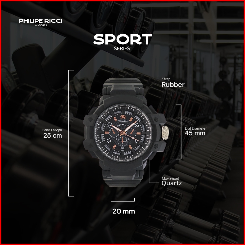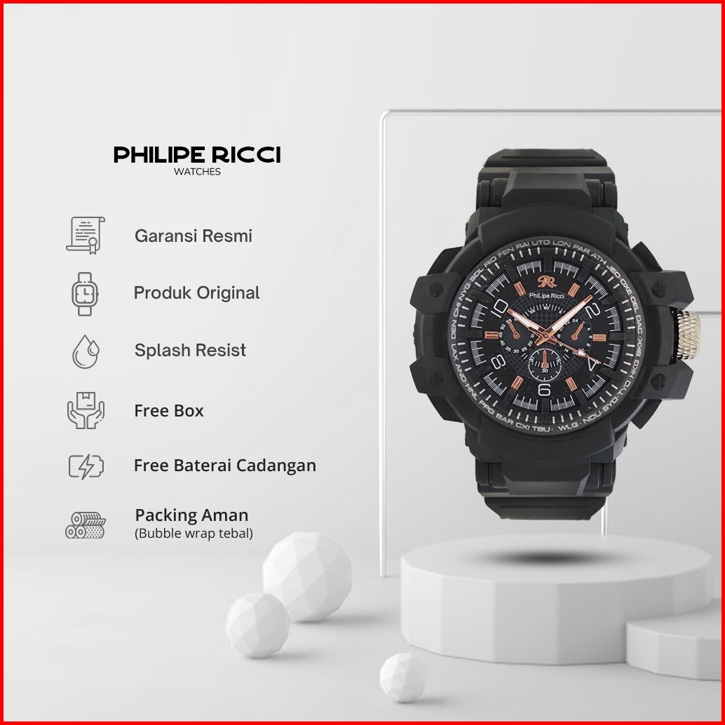 Philipe Ricci Jam Tangan Pria Analog Strap Tali Karet Terbaru Ukuran Besar Model Sporty 1921z Rubber Men Watches Free Bo