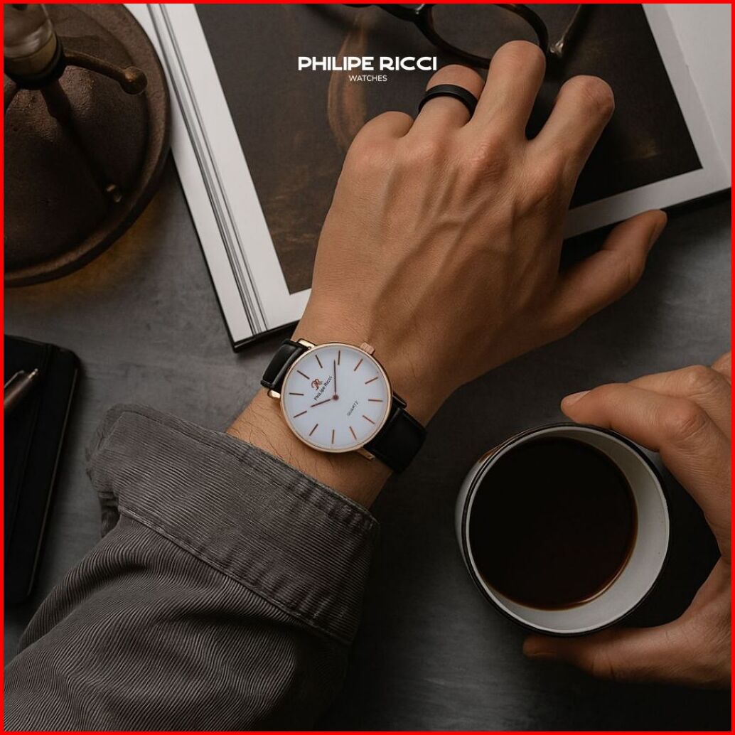 Philipe Ricci Jam Tangan Pria 100 Original Tipis Tali Kulit Quartz Cowok Kasual Analog Dial Bulat Strap Leather Model Si