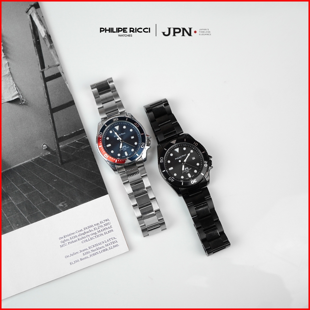 Philipe Ricci Jpn Jam Tangan Pria Anti Air Rantai Stainless Steel Original Terbaru 5090 Elegan Keren