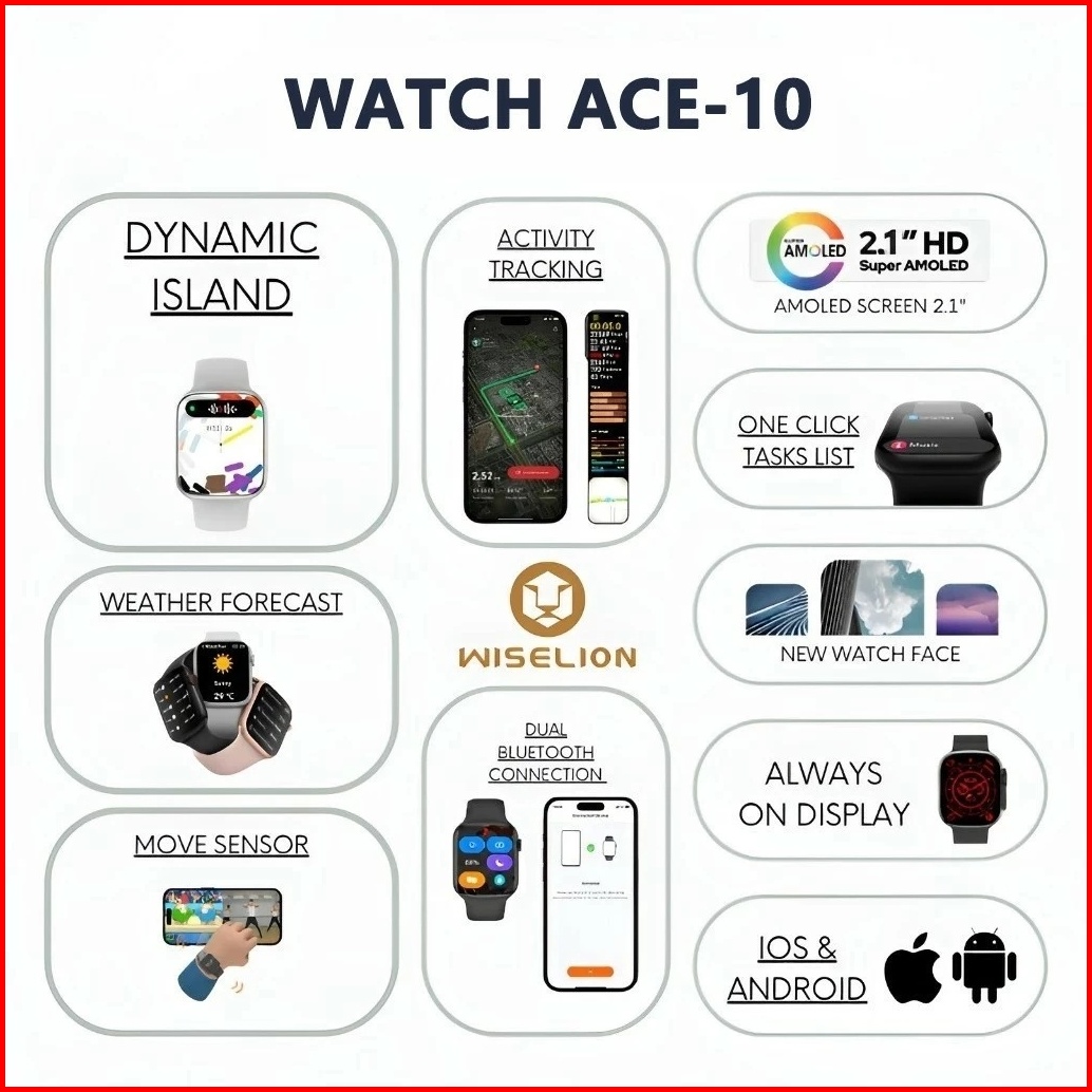 Promo Specialzero Smartwatch Watch10 Ace 2.2 Inch Hd Full Touch Screen Waterproof Ip68 Bluetooth Phone Call Customized D