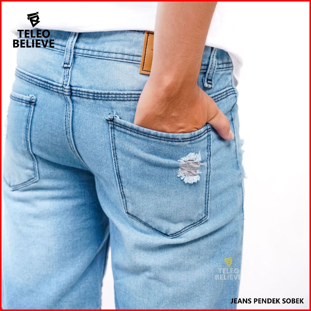 Celana Jeans Pendek Sobek Pria Wisker Jeans Pendek Ripped Robek Pria Premium Distro New