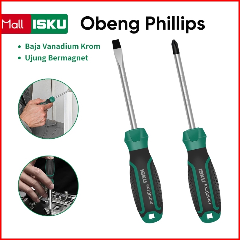 Isku Obeng Set Screwdriver Set 2pcs Tip Magnetik Chrome Vanadium Obeng Set