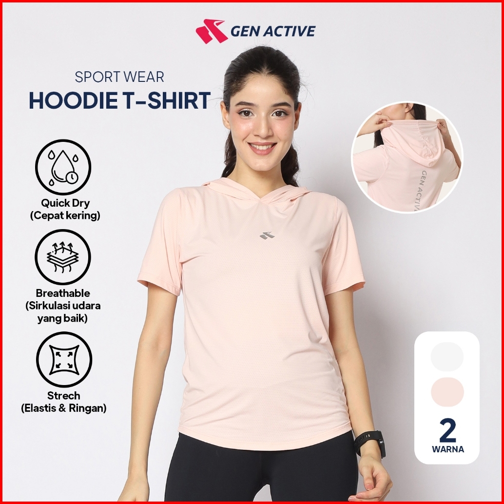 Gen Active Kaos Olahraga Wanita Hoodie Dry Fit Jaket Olahraga Cewek Sport Running Gym Tenis Padel