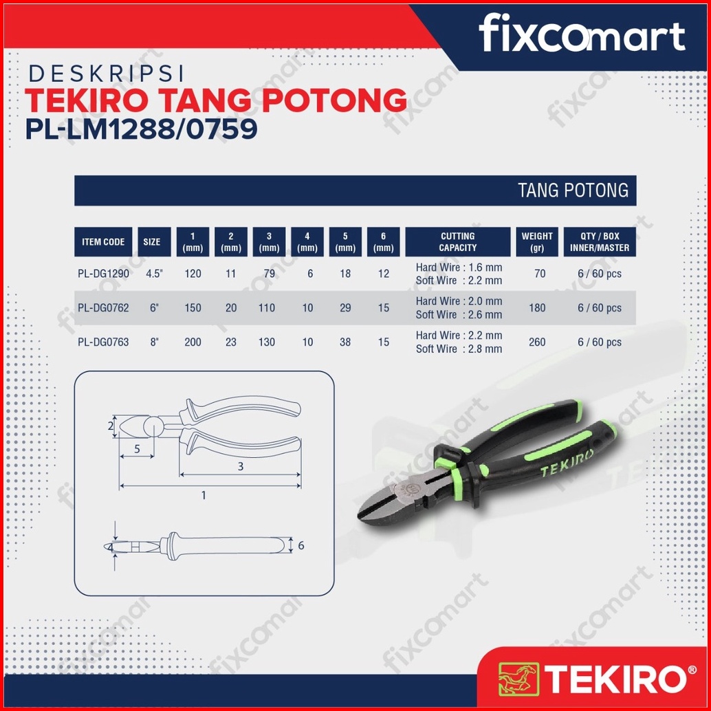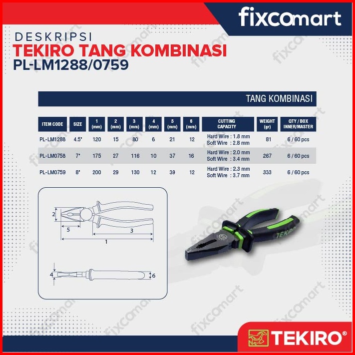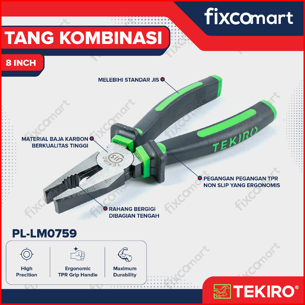 Tekiro Tang Kombinasi Lancip Potong Linesman Long Nose Diagonal Pliers 8 Inch