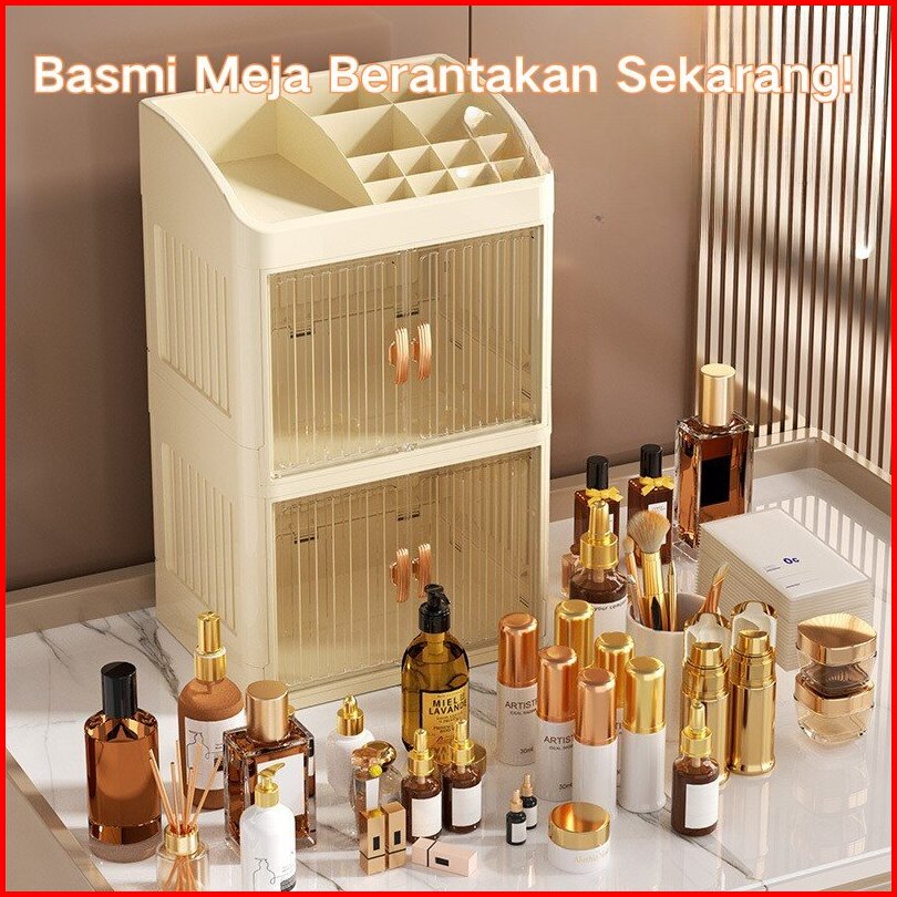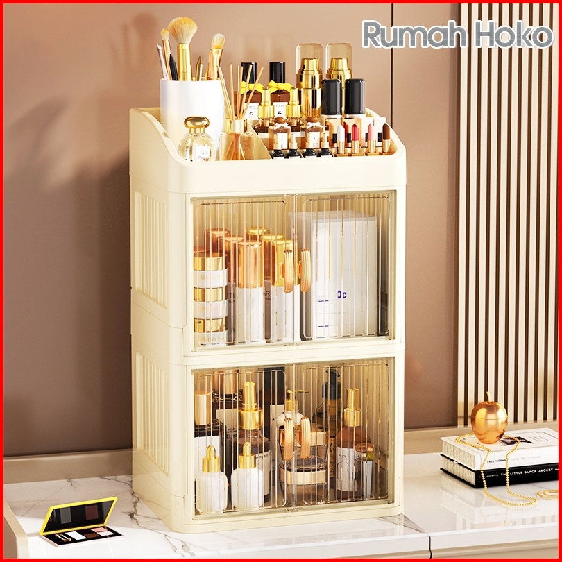 Rumah Hoko 1 2 Tingkat Transparan Organizer Skincare - Sikat Rias Pensil Alis Lipstik Masker Wajah Toner
