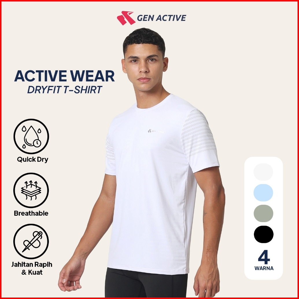 Gen Active Kaos Dry Fit Pria Kaos Quick Dry Baju Olahraga Cowok Sport Running Gym Fitness Padel
