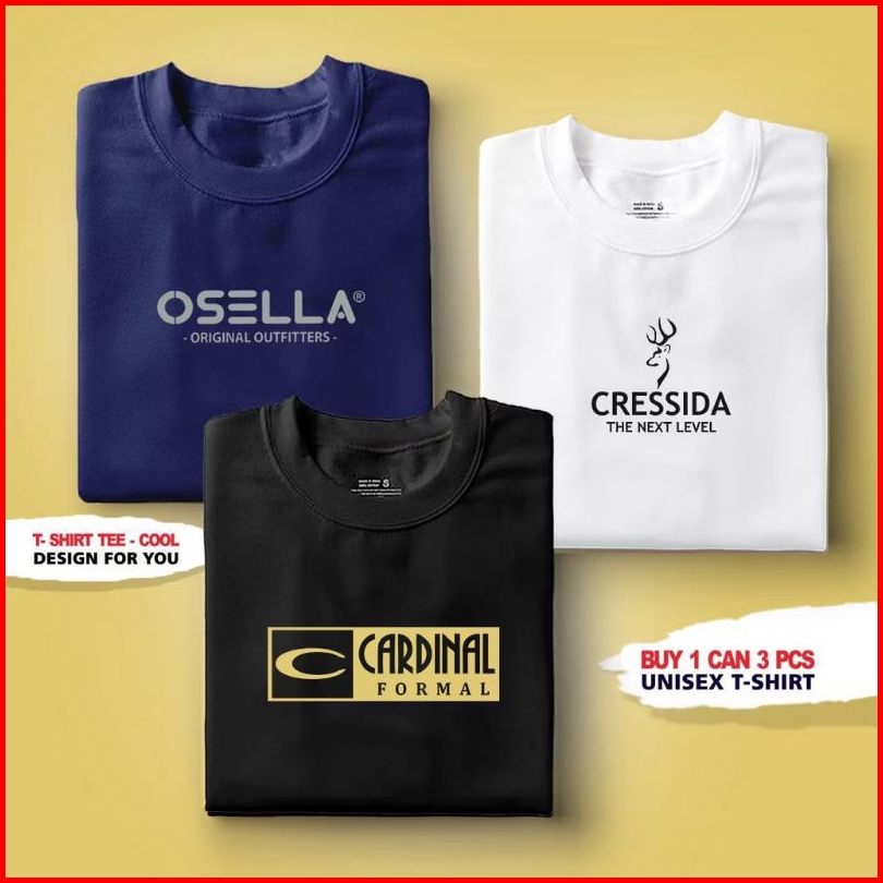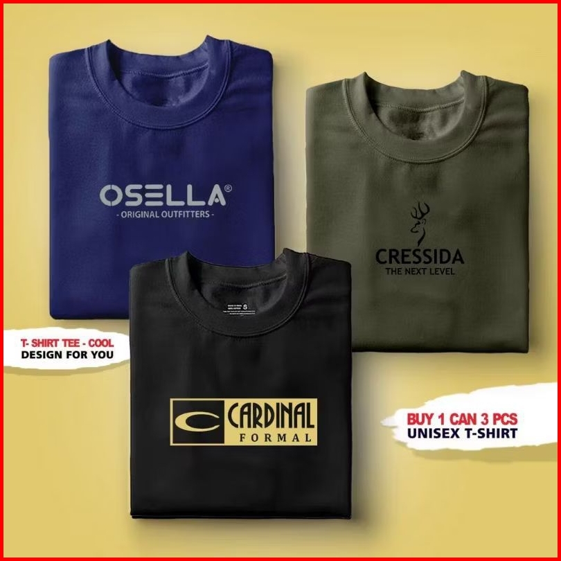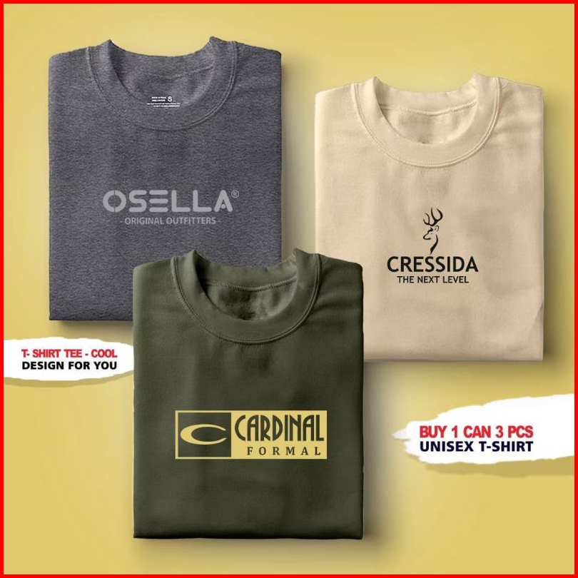 Promo Kaos Paket 3 Pcs Kaos Distro Pria 100 Katun Combed 30s Tebal Kaos Distro Murah-osella-cresida-cardinal