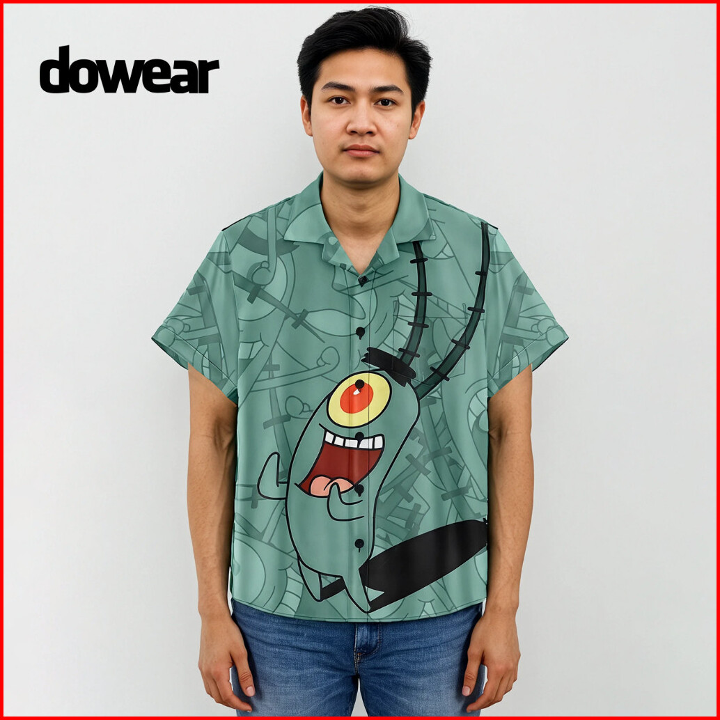 Dowear Baju Kemeja Motif Spongebob Kekinian Cowok Cewek Bali Pantai Surfing Hawai Jumbo 580 Plankton
