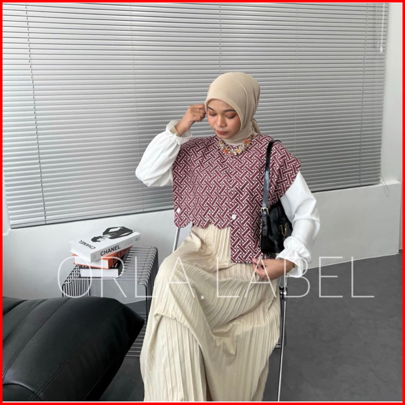 Orla Label Scalop Batik Vest Vest Batik Kekinian Outer Batik Baju Kantor Vest Unik