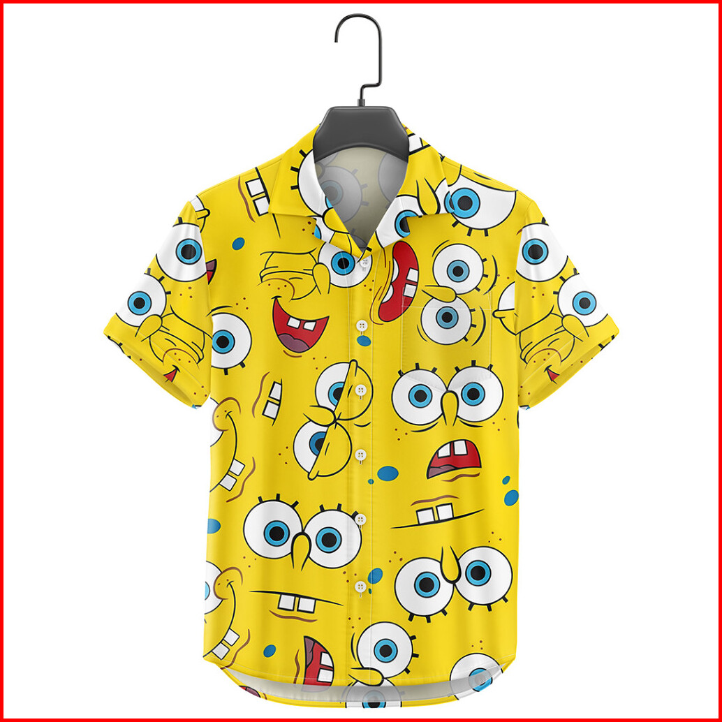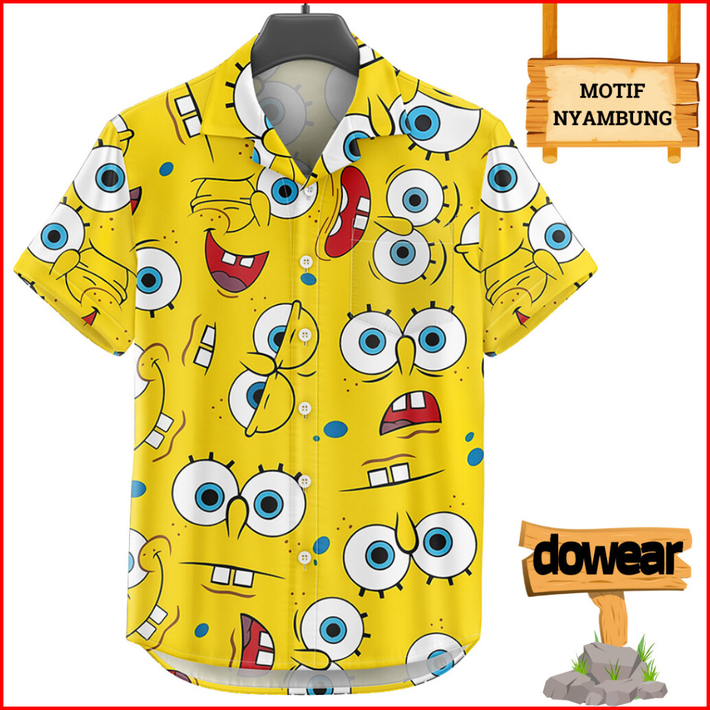 Dowear Baju Shirt Kemeja Pria Wanita Motif Spongebob Printing Pantai Lengan Pendek 577 Spongebob Nyengir