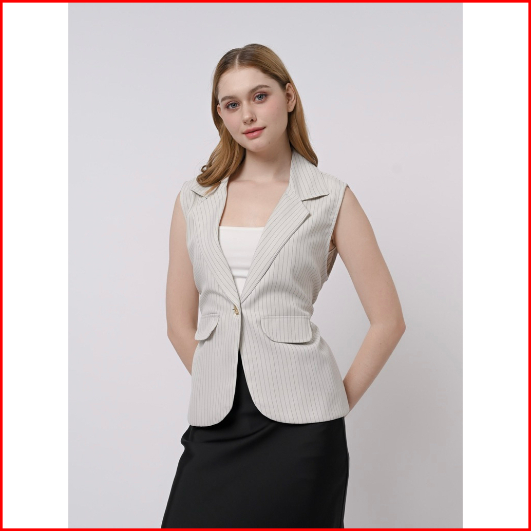 Baylera - Evely Vest Stripe Atasan Wanita Fit Body - Vest Rompi Salur Outer