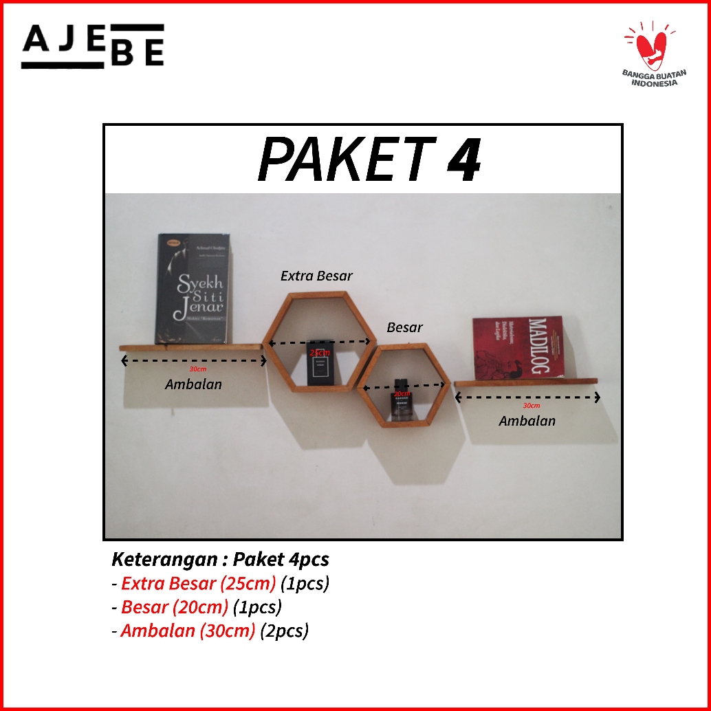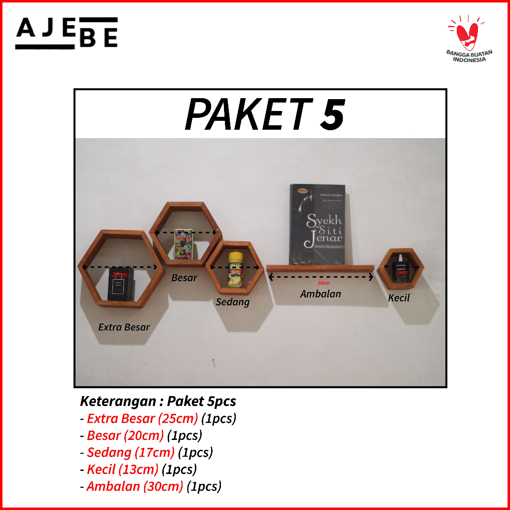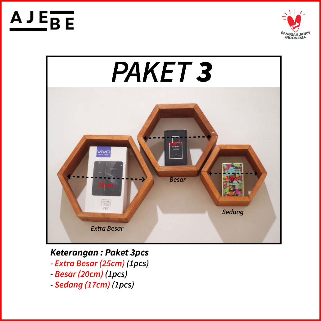 Hiasan Dinding Hexagonal Rak Dinding Kayu Minimalis