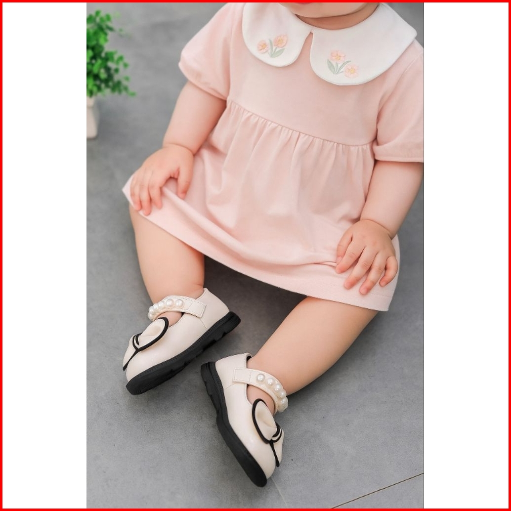 Sepatu Dokmart Anak Perempuan Model Pita Mutiara Korean Style Anti Slip Ringan Bahan Adem