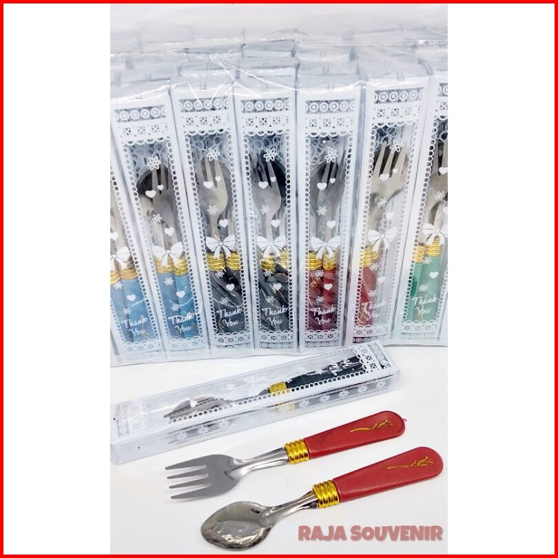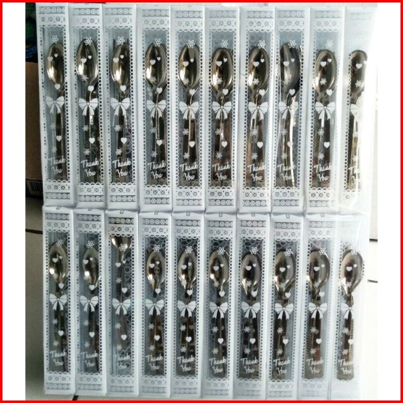 Isi 50pcs Souvenir Pernikahan Sendok Garpu Silver Kemasan Mika