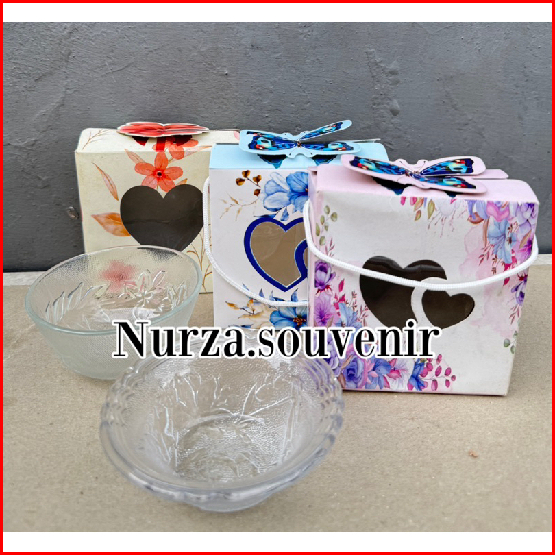 Isi 30pcs Souvenir Mangkok Kaca Motif Random Kemasan Box Cantik