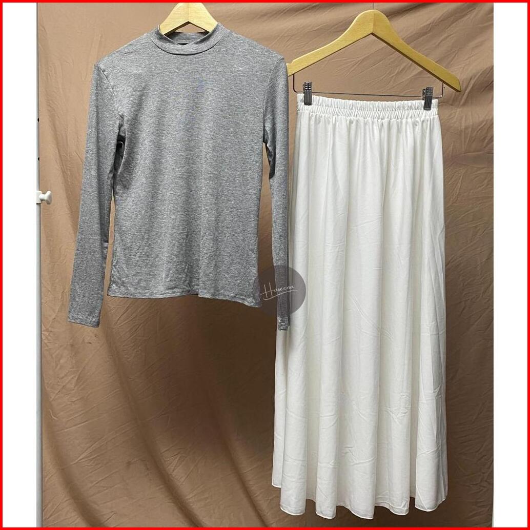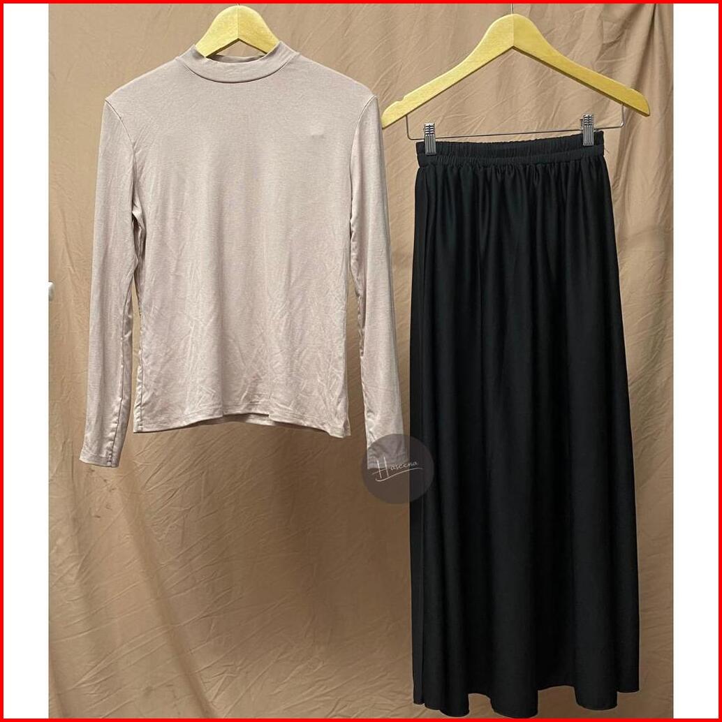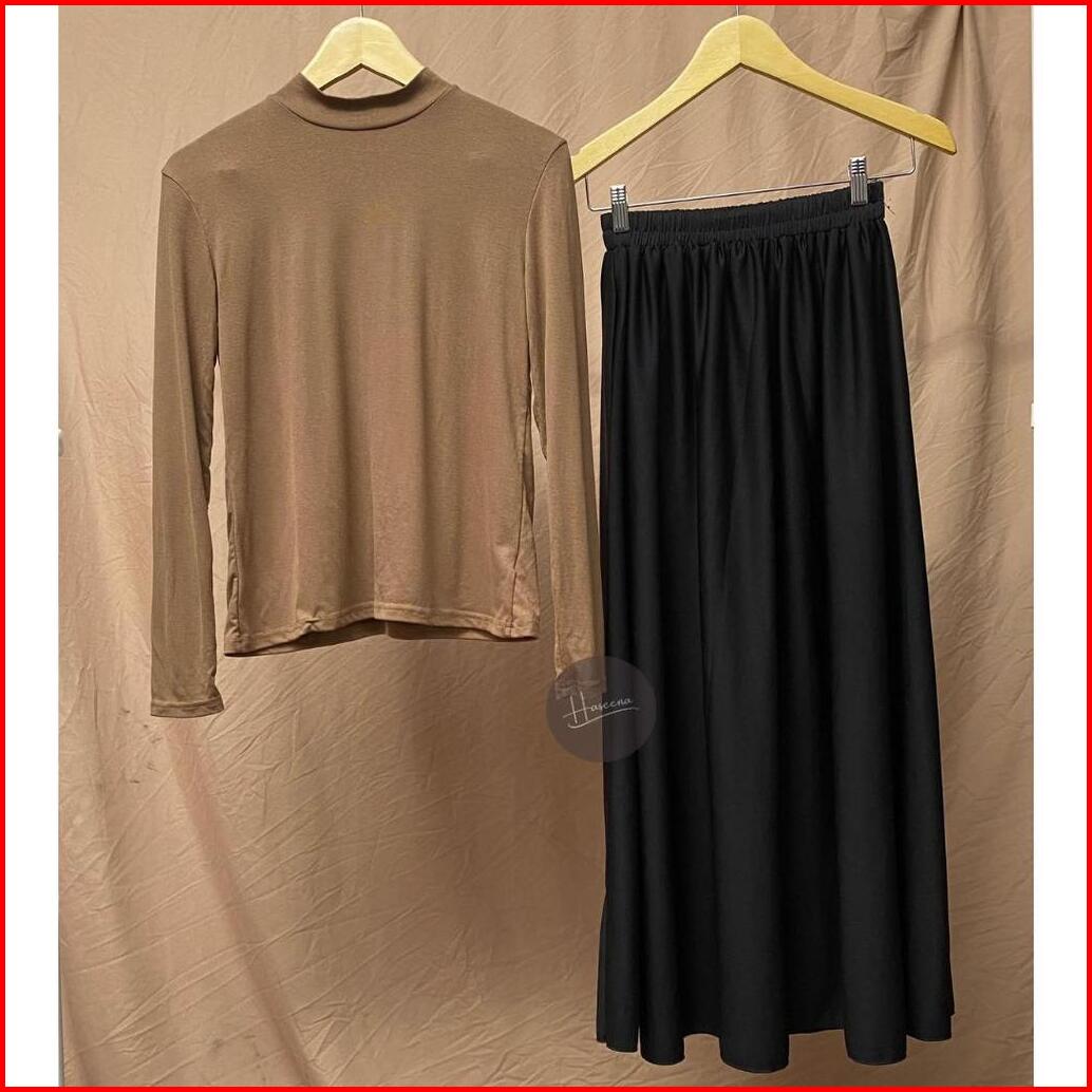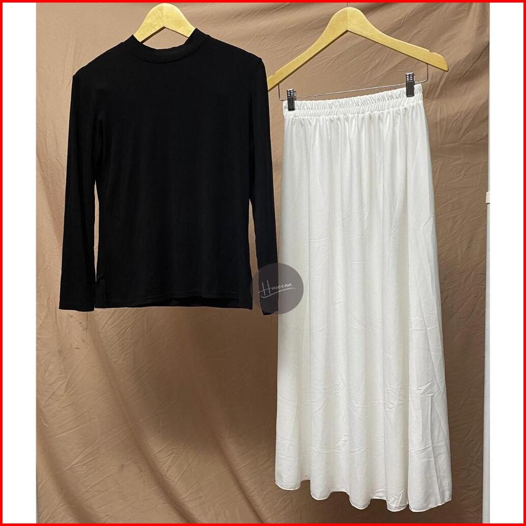 Haseena One Set Wanita Aqilla Setelan Manset Inner Lengan Panjang Rok Basic Polos Skirt Maxi All Size Daily Set