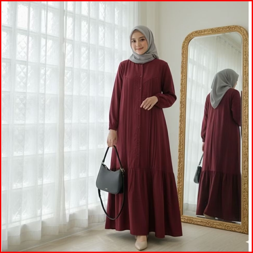 Lunna Dress Bahan Rayon Twill Premium Gamis Wanita Muslim Gamis Mewah Pesta Lebaran 2025