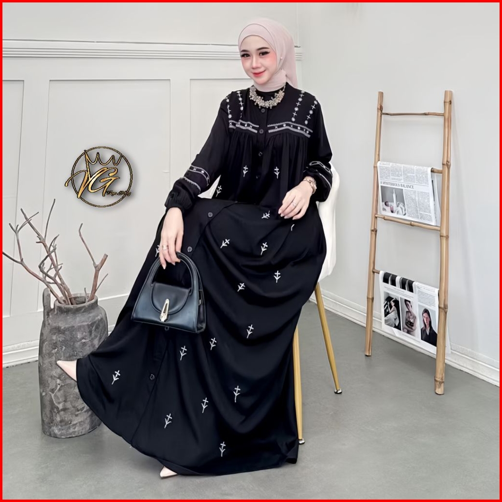 Gamis Bordir Premium Twill Bordir Premium Panjang Baju 135 Cm Lingkar Dada 120cm.