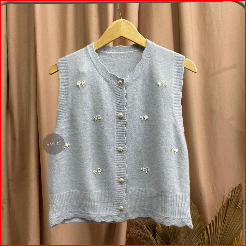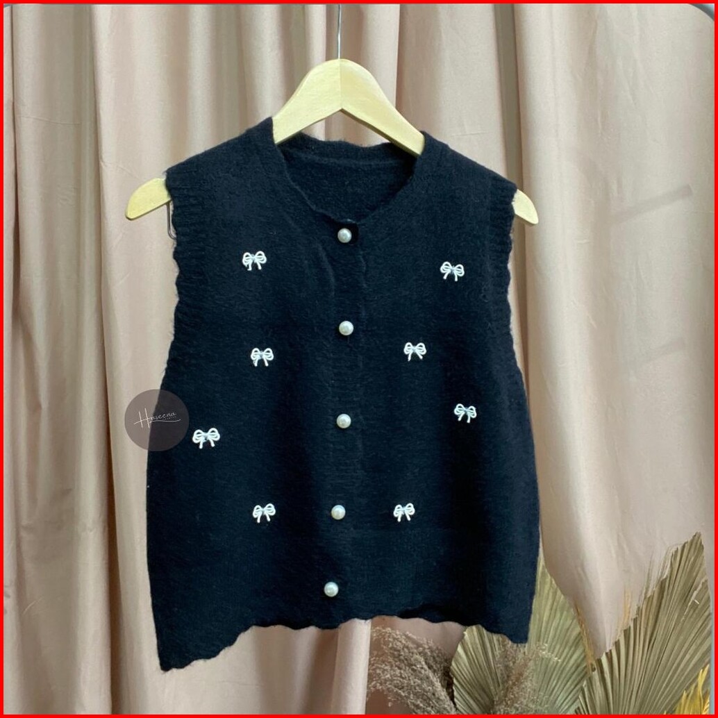 Haseena Vest Knit Pita Sabira Rompi Coquette Ribbon Outer Rajut Halus Simpel Wanita