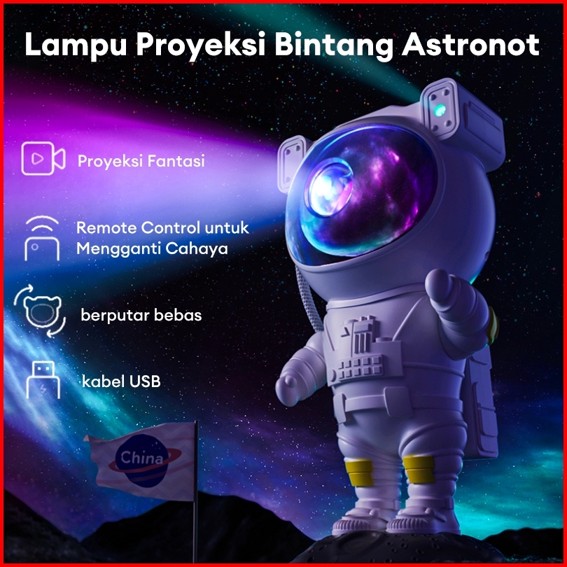 Garansi 10 Tahun Lampu Tidur Aesthetic Lampu Atmosfer Astronot Lampu Proyektor Hadiah Natal Ulang Tahun Proyektor Bintan