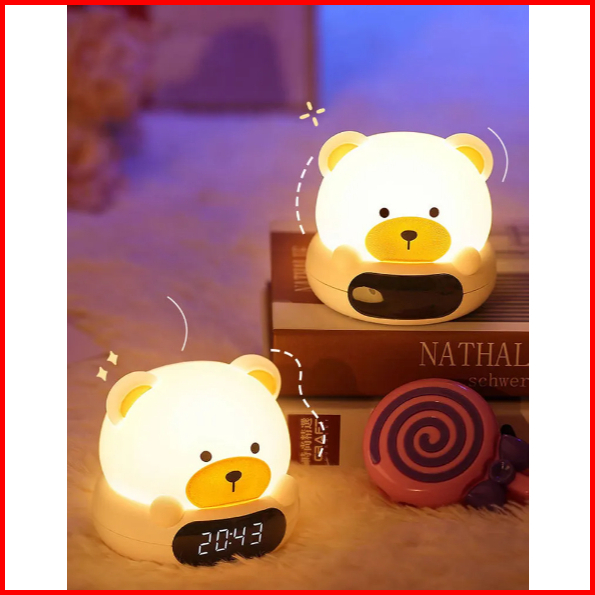Lampu Tidur Model Kucing Led Wireless Lampu Tidur Jam Remote Digital Rechargeable