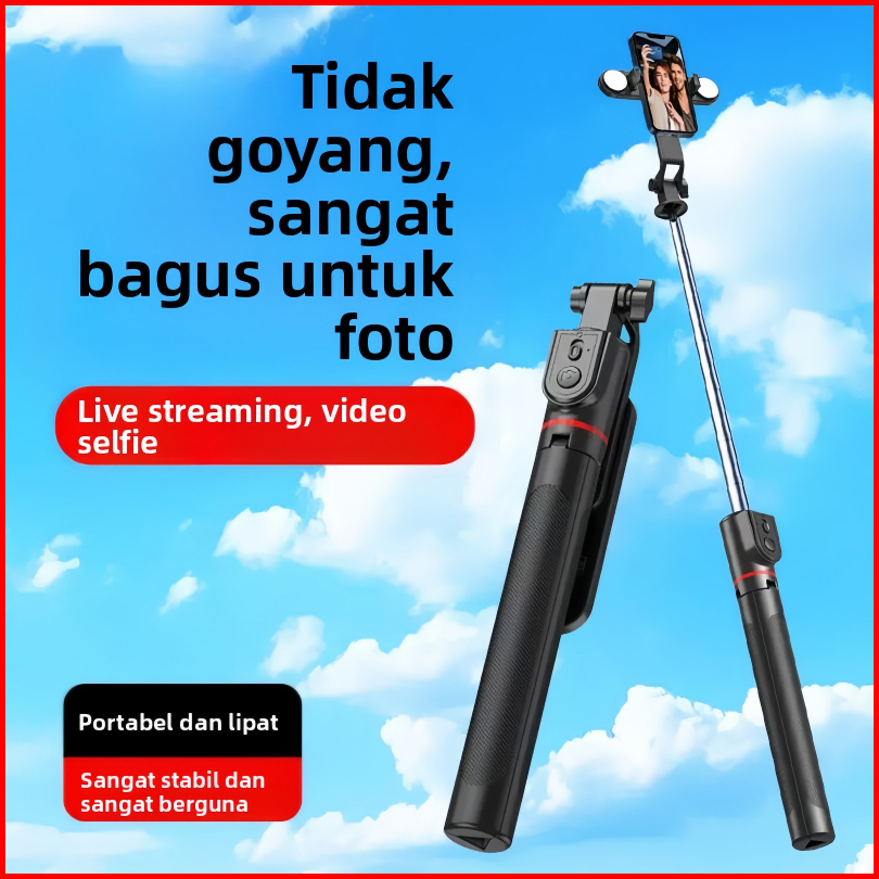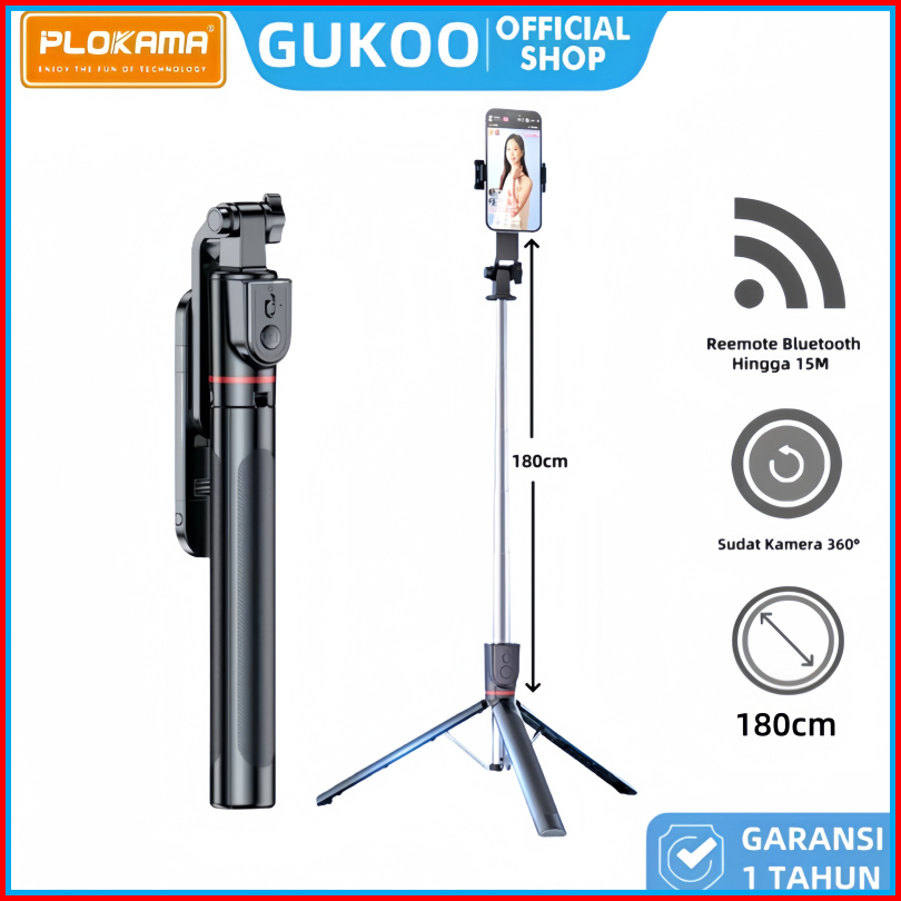 Gukoo Premium Bluetooth Tripod Selfie Stick 1.8m - Koneksi Bluetooth Bisa Buat Tripod Remote Jarak Jauh Mudah Disimpan -