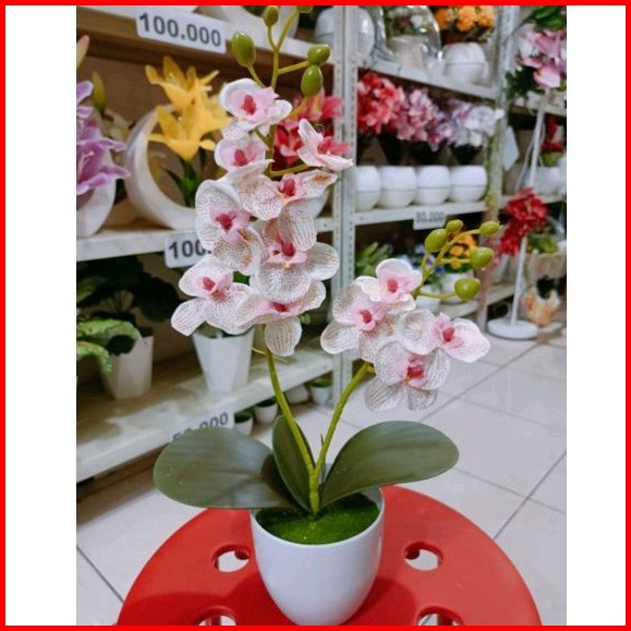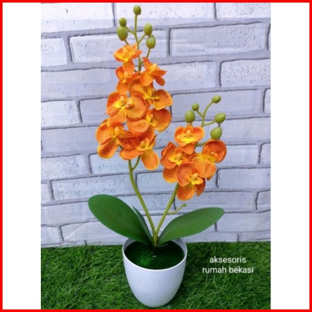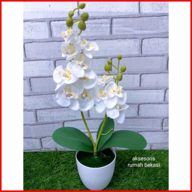 Bunga Anggrek Artificial 2 Cabang Ukuran Besar Dengan Pot Bulat Lumut