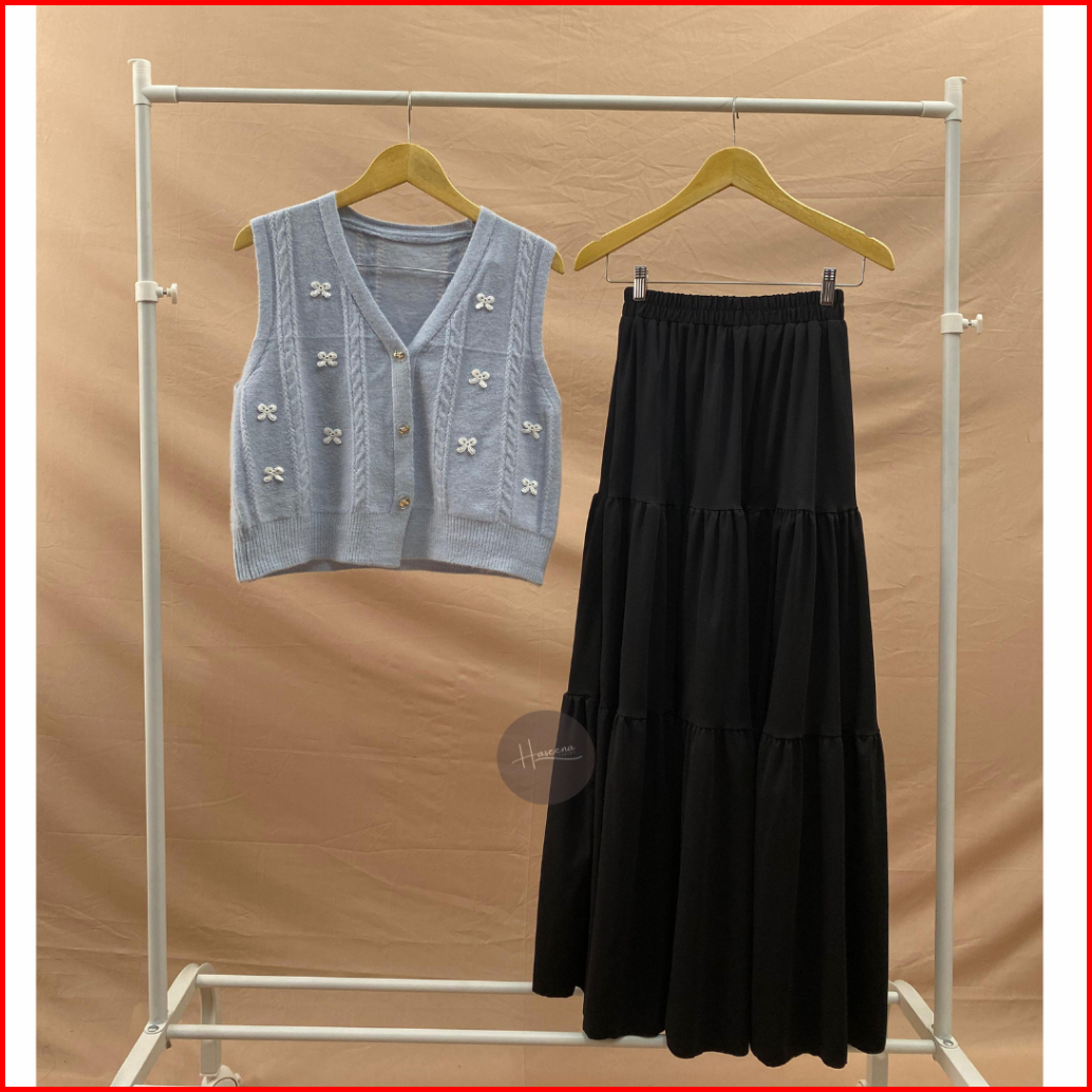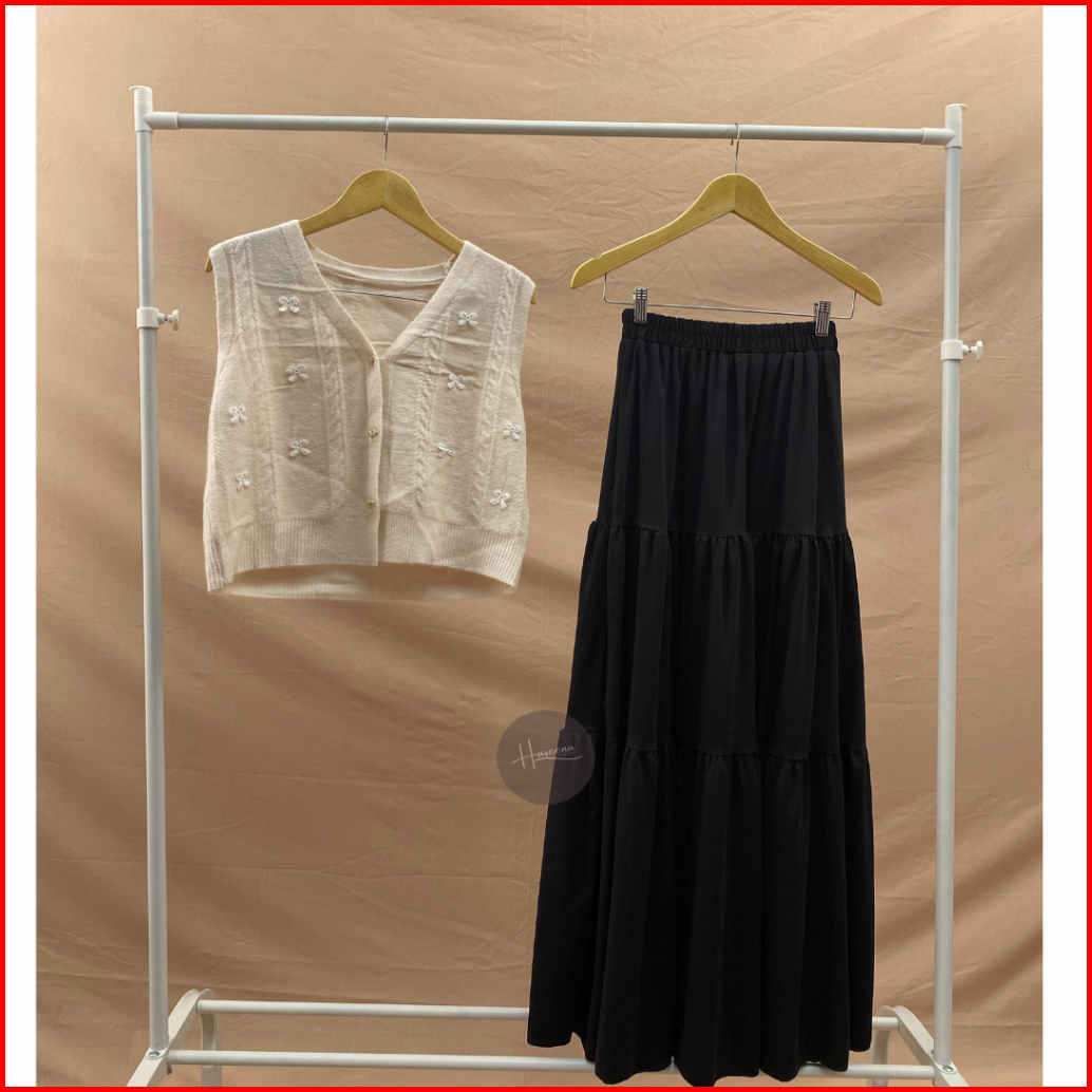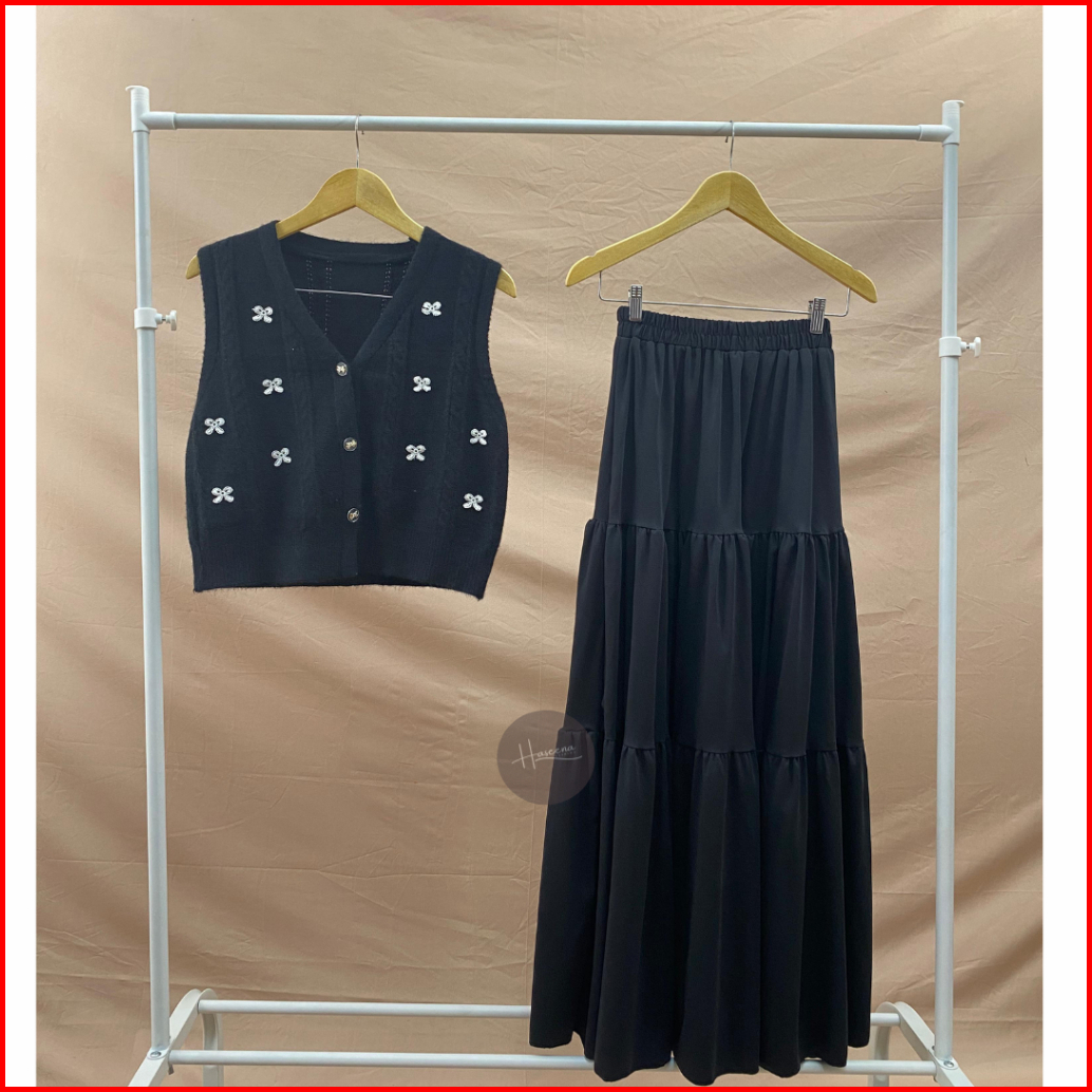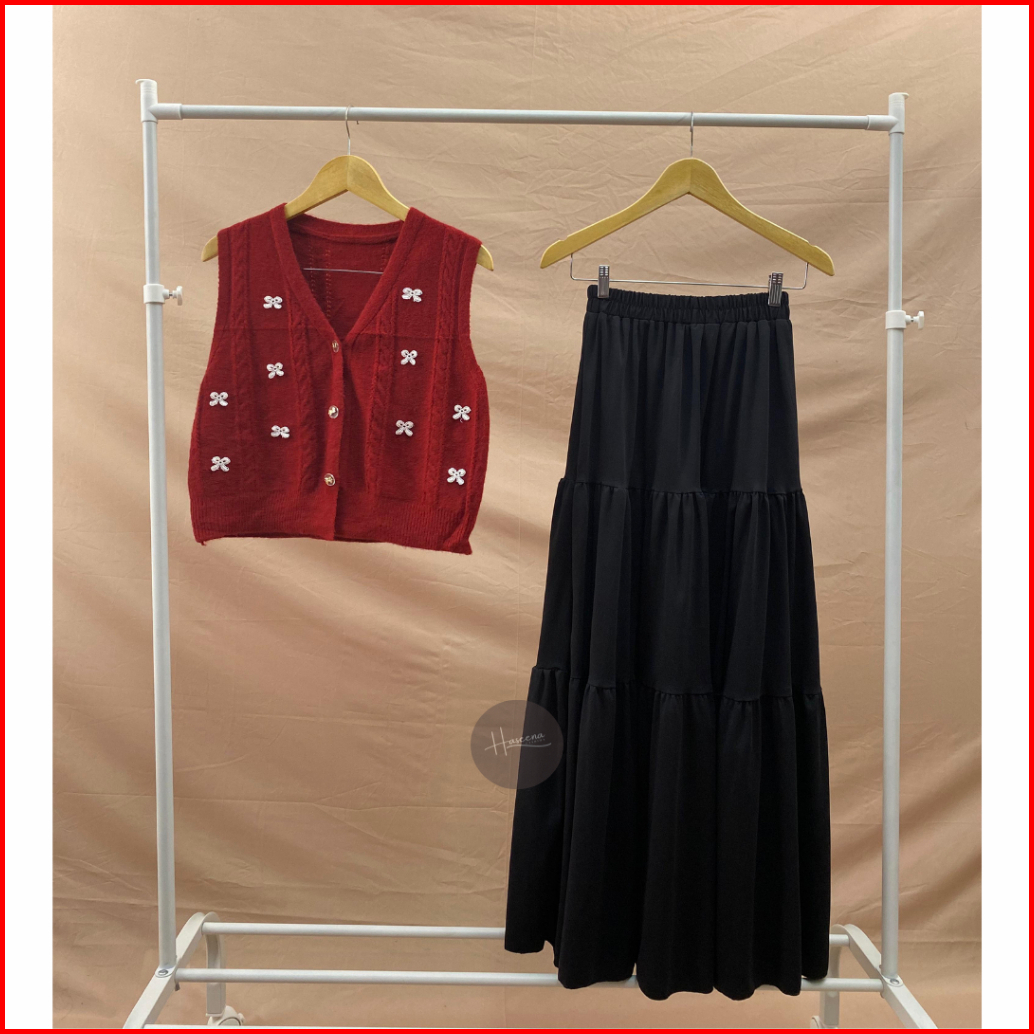 Haseena One Set Wanita Kalila Outer Rompi Pita Nazeera Rok Polos Susun Tiga Set Skirt Vest Basic Ribbon