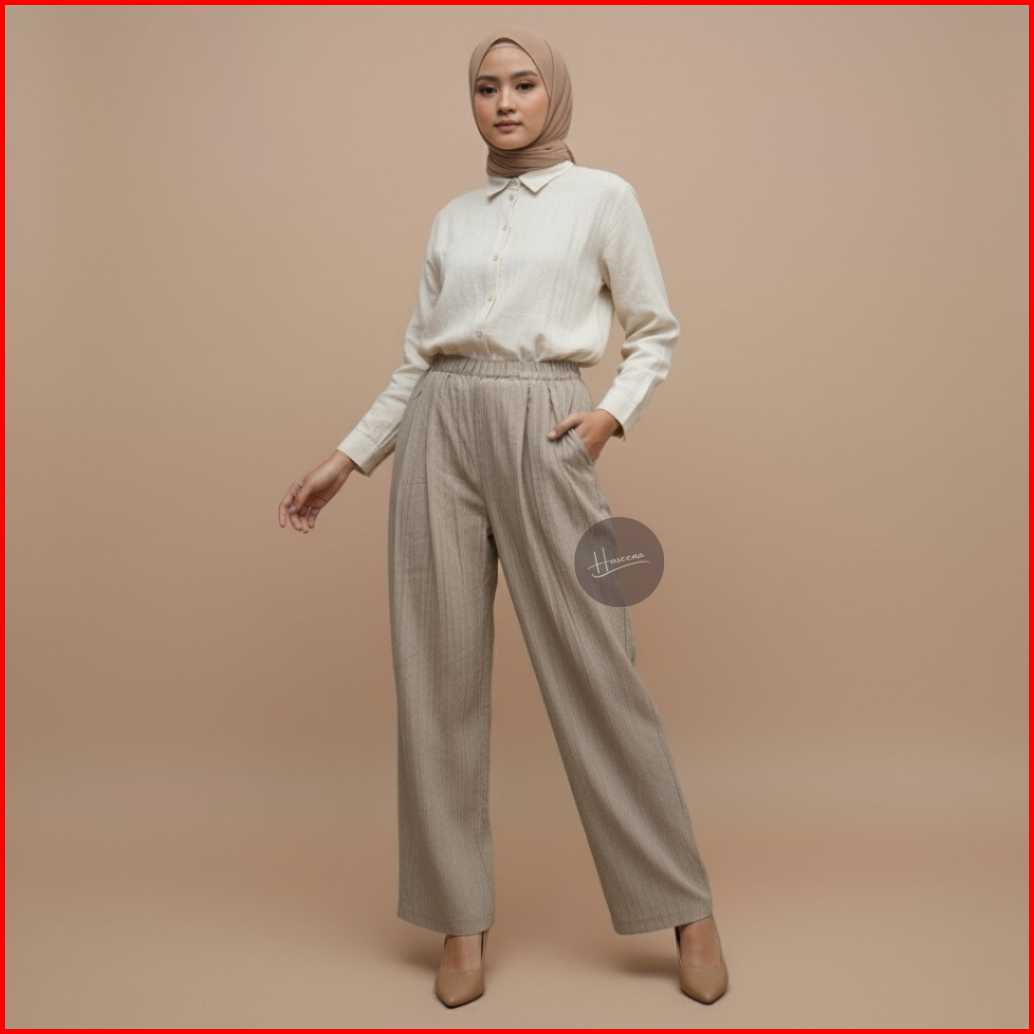 Haseena Celana Wanita Hana Highwaist Pants Parasut Polos Anti Nerawang
