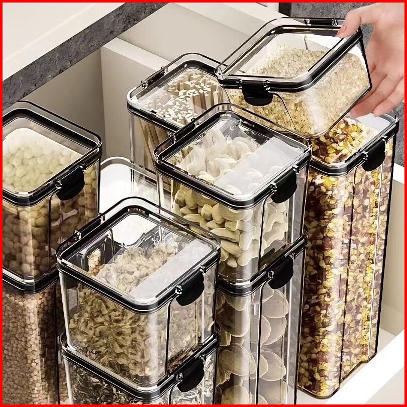 Toples Penyimpanan Kedap Udara Dengan Tutup Ideal Untuk Menjaga Kesegaran Makanan Kering Buah Dan Biji-bijian Multi-grai