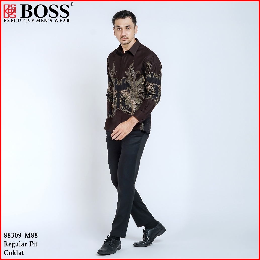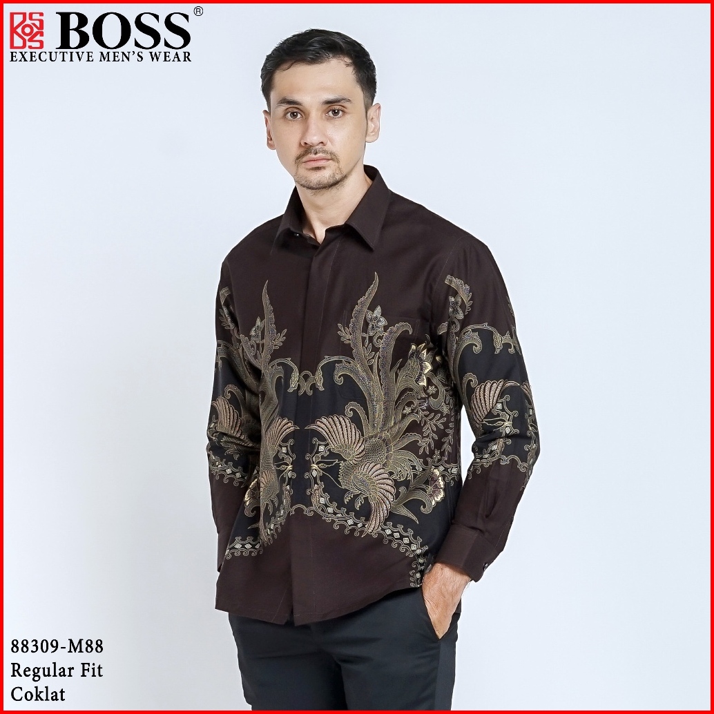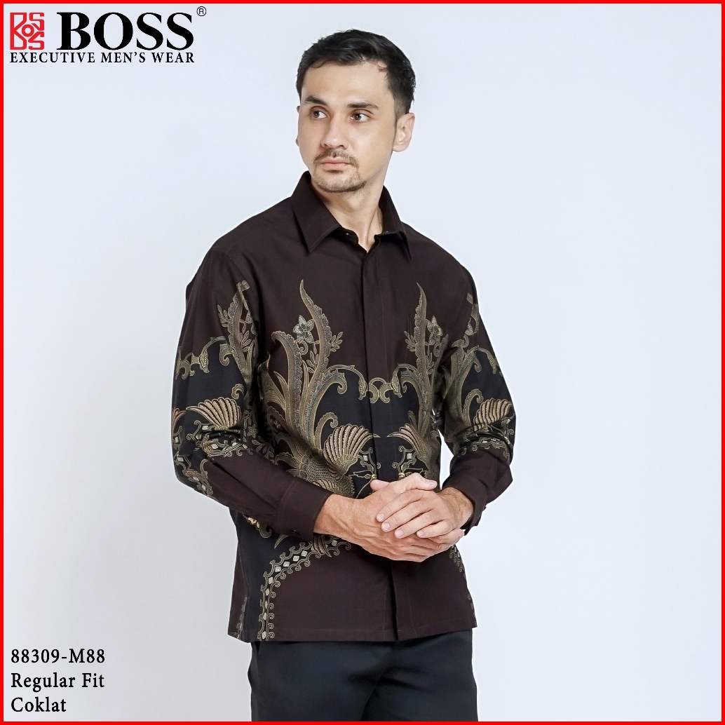 Boss Kemeja Batik Pria Lengan Panjang Regular Fit 88309 Coklat