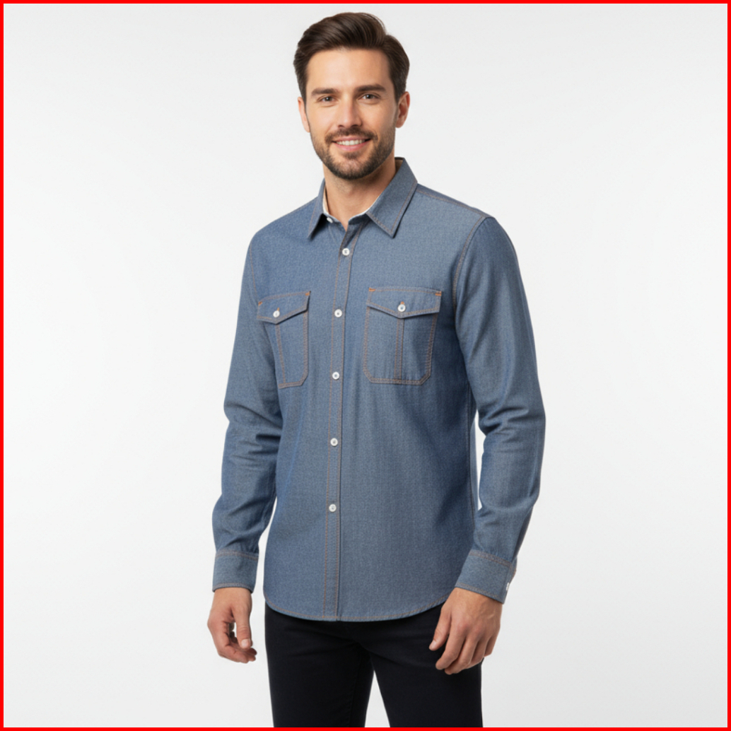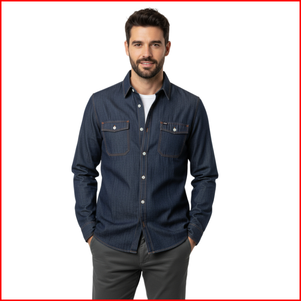 Sallamahgo - Kemeja Jeans Pria Kain Soft Jeans