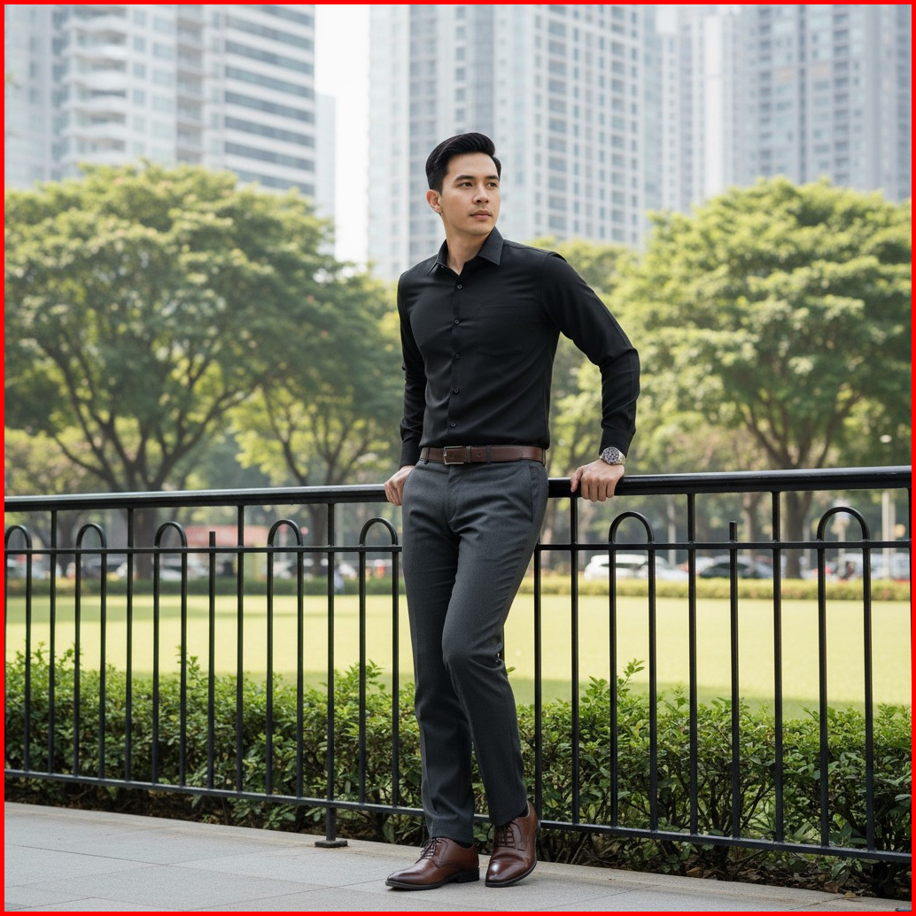 Sallamahgo Kemeja Polos Pria Lengan Panjang Model Slimfit Body Bahan Katun Kulitas Import