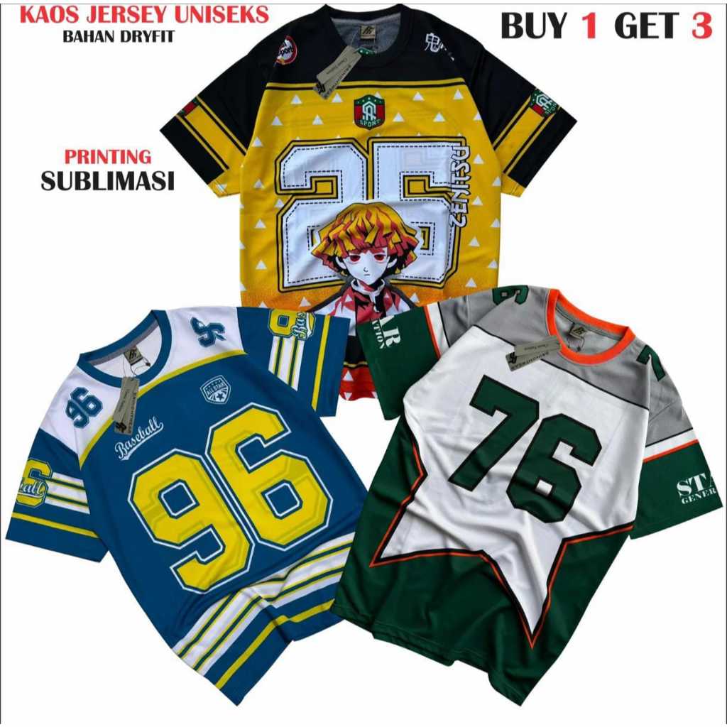 Paket 3 Kaos Jersey Dry Fit Anime Size L XL XXL Dewasa Printing Sublimasi Anime Sport Anti Lengket