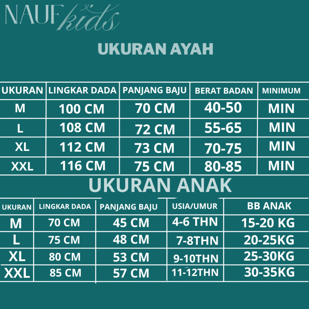 Ayah Hitam, Ayah Putih, Ayah navy, Ayah coksu, Ayah abu, Anak navy, Anak abu, Anak Putih, Anak Coksu, Anak Hitam