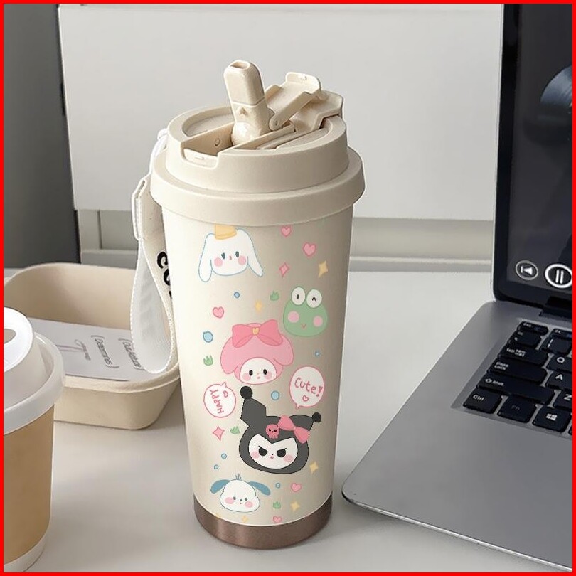 Tumbler Termos Kopi Cup 500 Ml Termos Stainless Custom Steel Straw Bottle Botol Minum Aesthetic Botol Kopi Kartun Cute A