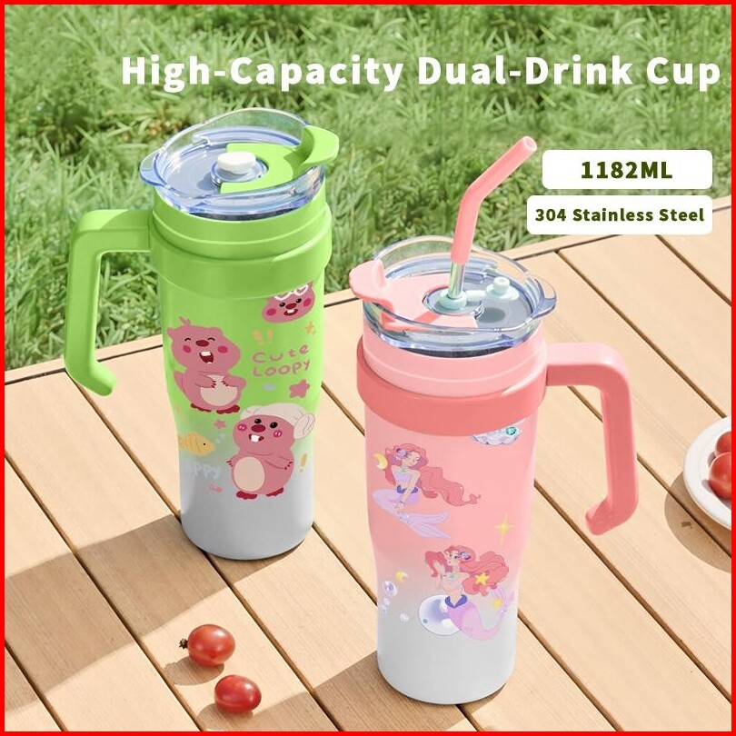 Tumbler Loopy Termos Kopi Cup 1182 Ml Termos Custom Stainless Steel Straw Bottle Botol Minum Aesthetic Botol Kopi Cartoo