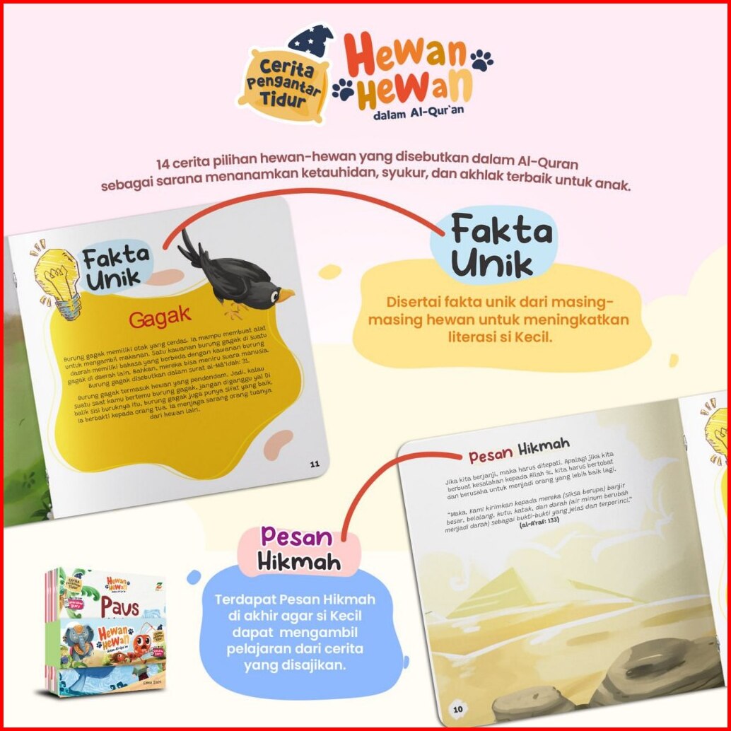 Ziyadbooks - Isi 14 Buku Cerita Pengantar Tidur Islami - Hewan-hewan Dalam Al Quran - Dongeng Anak Hewan Fabel Muslim 2