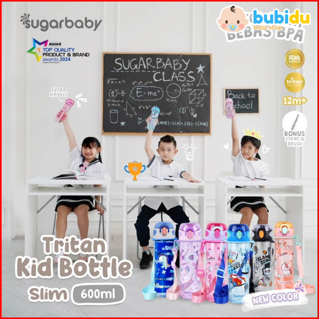 Sugar Baby Tritan Kid Bottle Slim 600ml Botol Tempat Minum Sedotan Anak Bpa Free Premium Eastman Bottle Sugarbaby