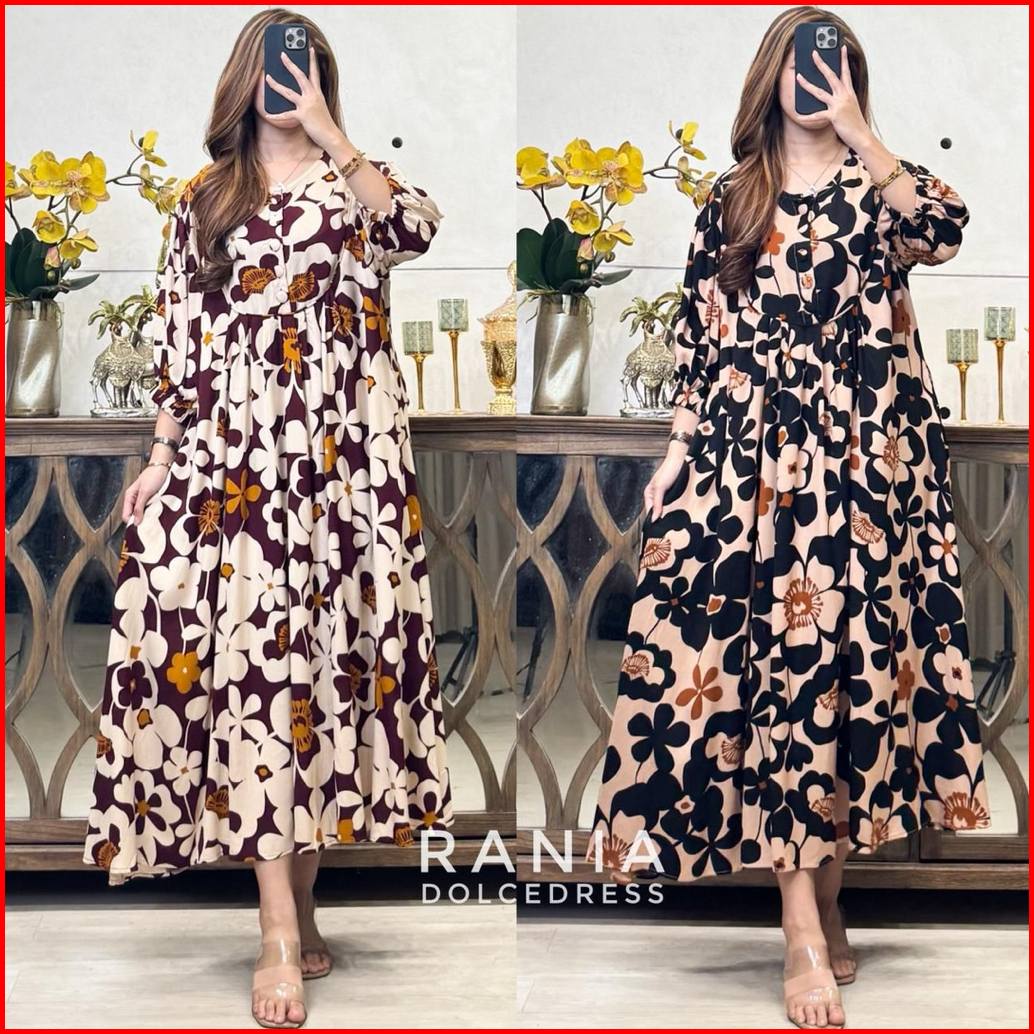 Dolcedress Rania Midi Dress Lengan 3 4 Bahan Rayon
