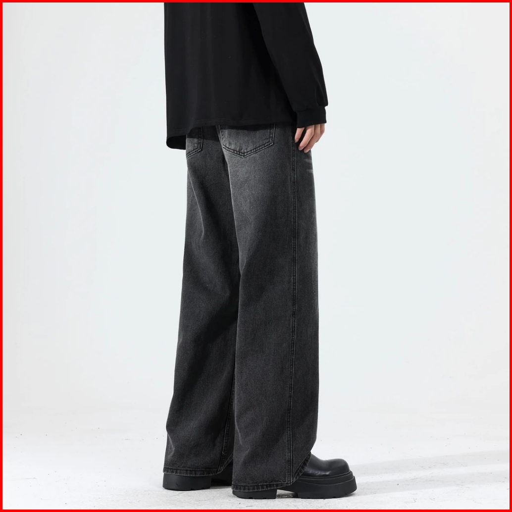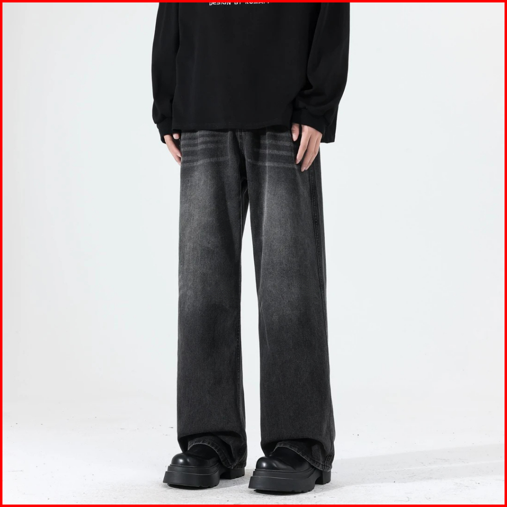 Oversize Vintage Celana Jeans Pria Baggy Retro Hitam Standar Original Denim Cowok Keren Casual Boyfriend Kekinian Laki L