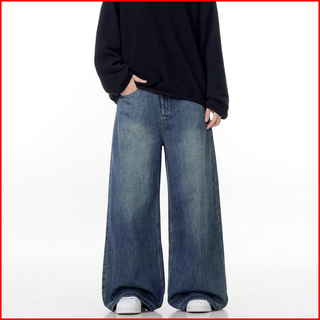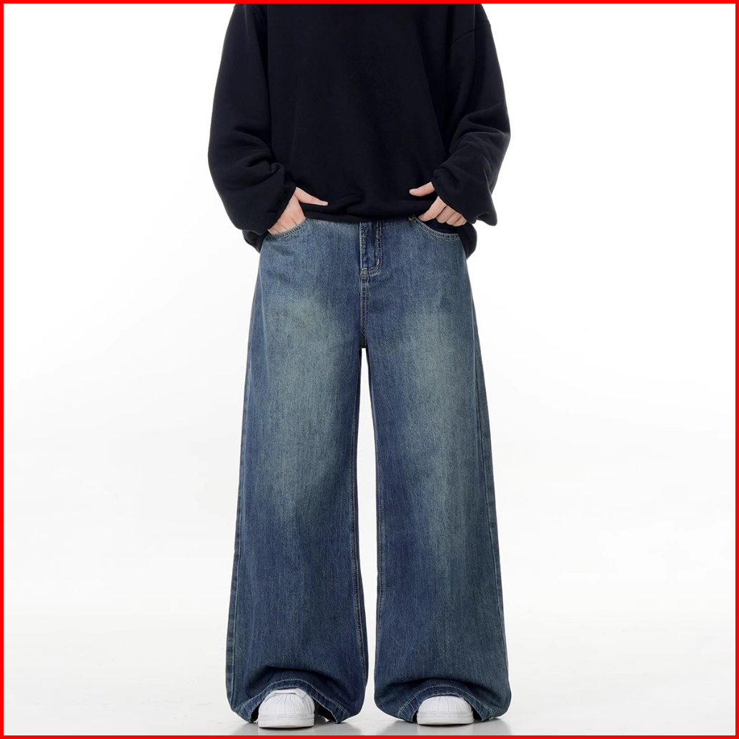 Oversize Vintage Celana Jeans Pria Rertro Biru Gombrong Korean Style Cowok Standar Original Casual Kekinian Soft Jeans L